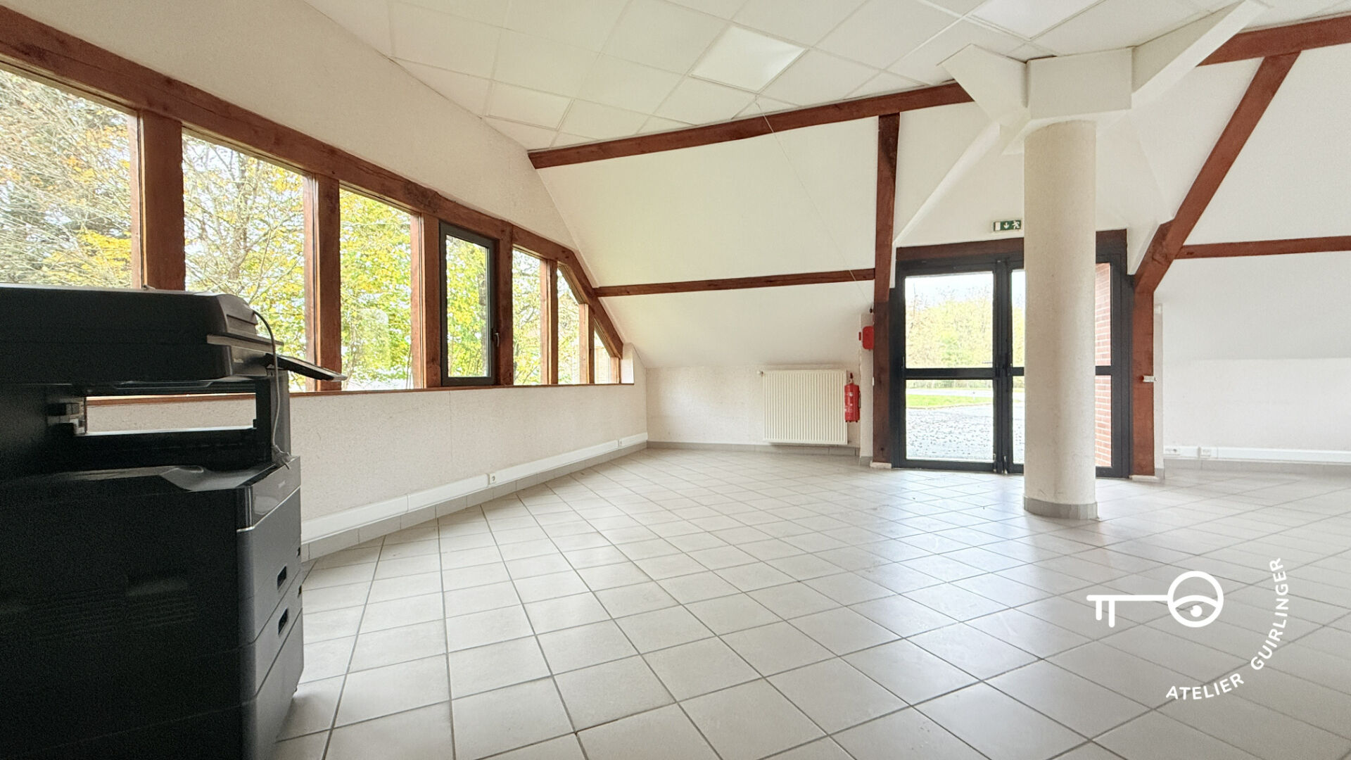 Ce spacieux bâtiment, construit en 2004, est parfaitement aménagé pour répondre à tous vos besoins professionnels. Il comprend un accueil chaleureux, plusieurs bureaux, une salle d'activité polyvalente, un laboratoire équipé, des archives, une salle de détente conviviale, des toilettes et un atelier/entrepôt de 193 m² avec accès facilité pour le chargement et le déchargement des camions.