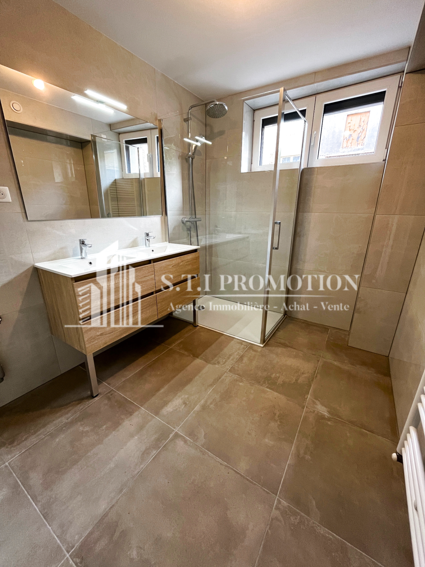 Côté nuit, deux belles chambres lumineuses vous garantissent un espace reposant et fonctionnel. Vous apprécierez également la salle d'eau contemporaine, équipée d'une douche à l'italienne, ainsi qu'une buanderie indépendante, pratique pour le quotidien.