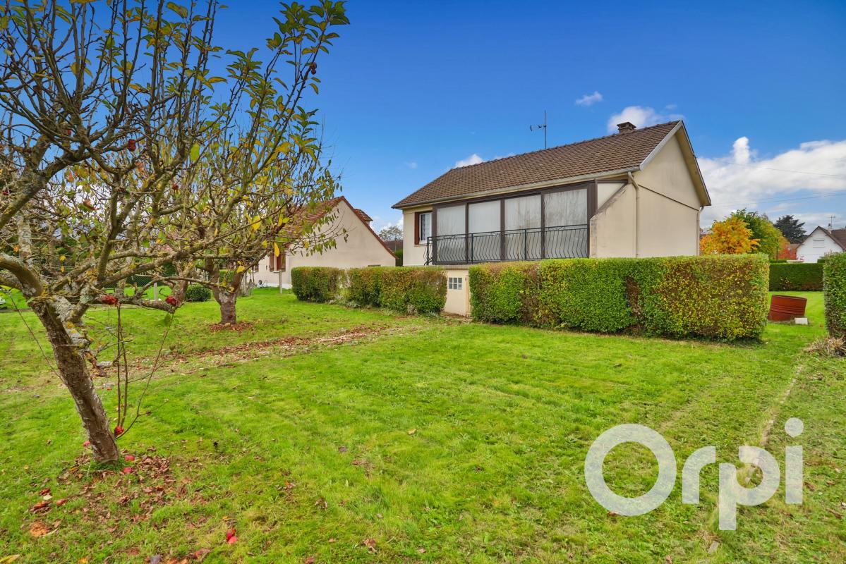 Gisors à 2 pas du Centre Ville, maison de plain pied surélevé sur sous sol total offrant: Entrée couloir, cuisine, séjour avec cheminée insert, véranda de 12m², 2 chambres, salle d'eau, wc, chauffage central fuel, sous sol total avec garage et buanderie, le tout sur un jardin clos de 717m².