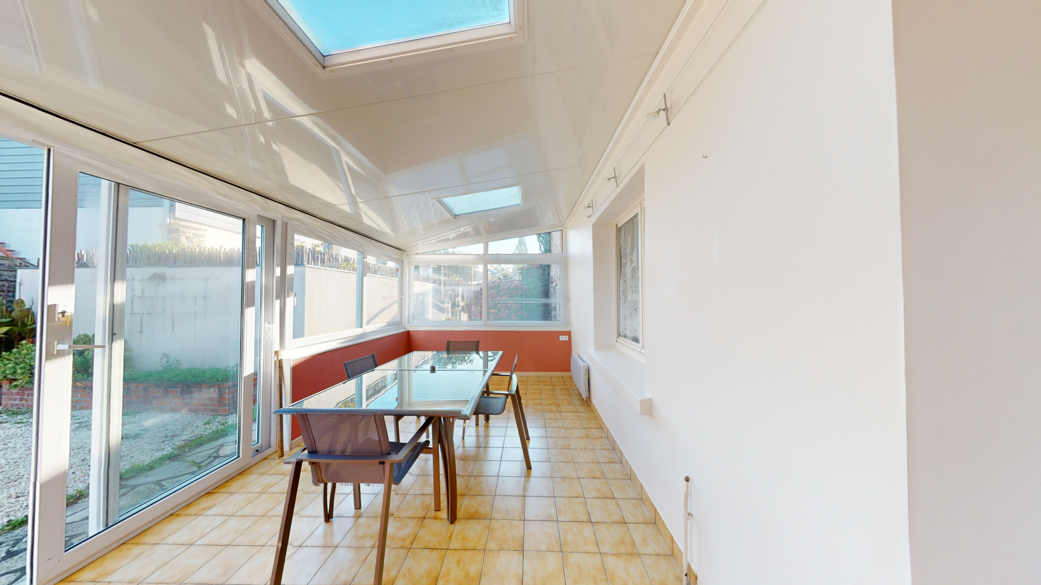 Dès l'entrée, vous serez charmé par une vaste pièce de vie équipée d'une cuisine ouverte et aménagée, ainsi qu'une cheminée avec insert pour vos soirées d'hiver. Une véranda chauffée et isolée de 16 m2 prolonge cet espace, offrant une vue directe sur le jardin.