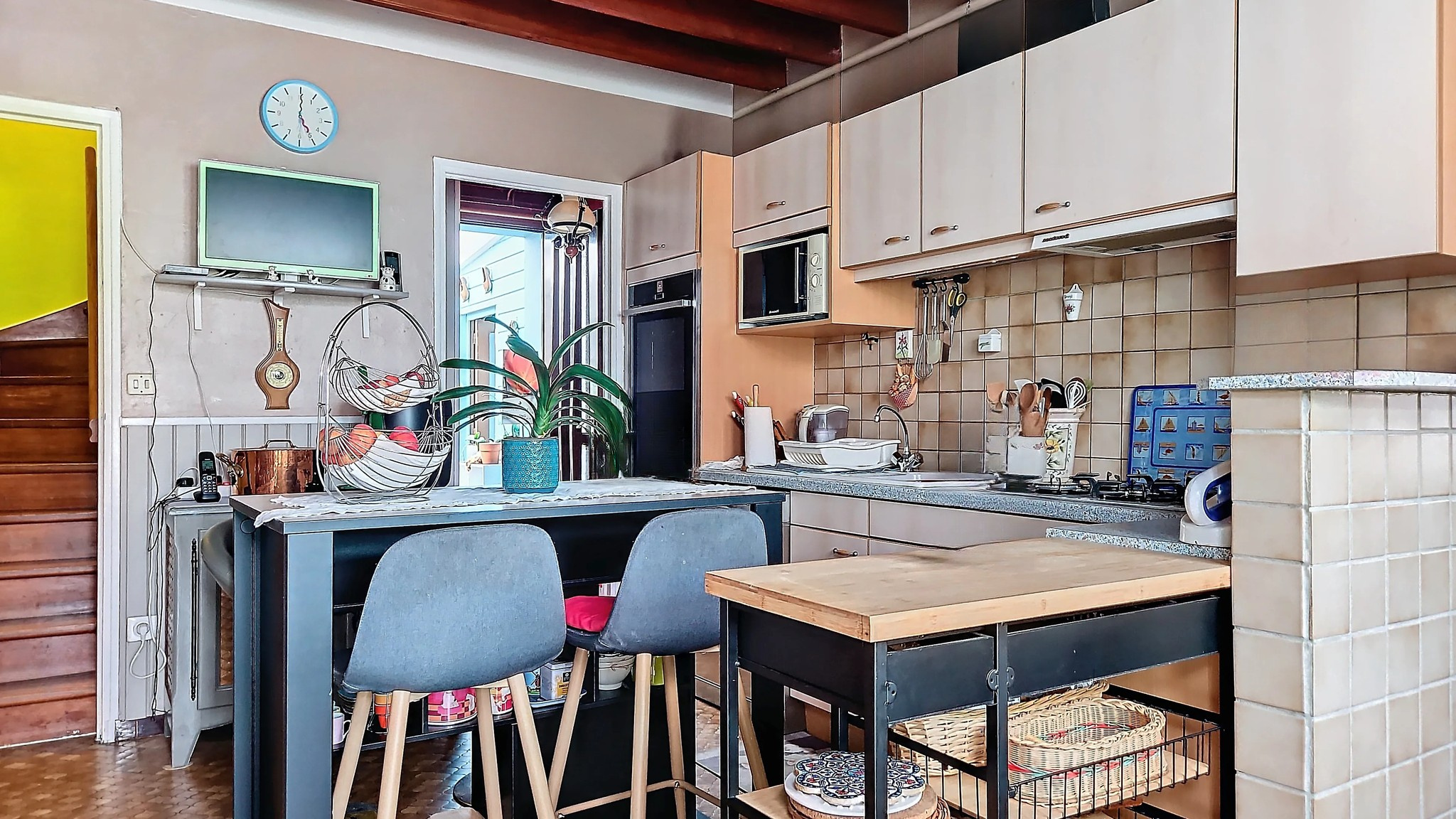 une cuisine aménagée et équipée, un séjour, une salle d'eau et un WC indépendant, un cellier buanderie, une véranda.