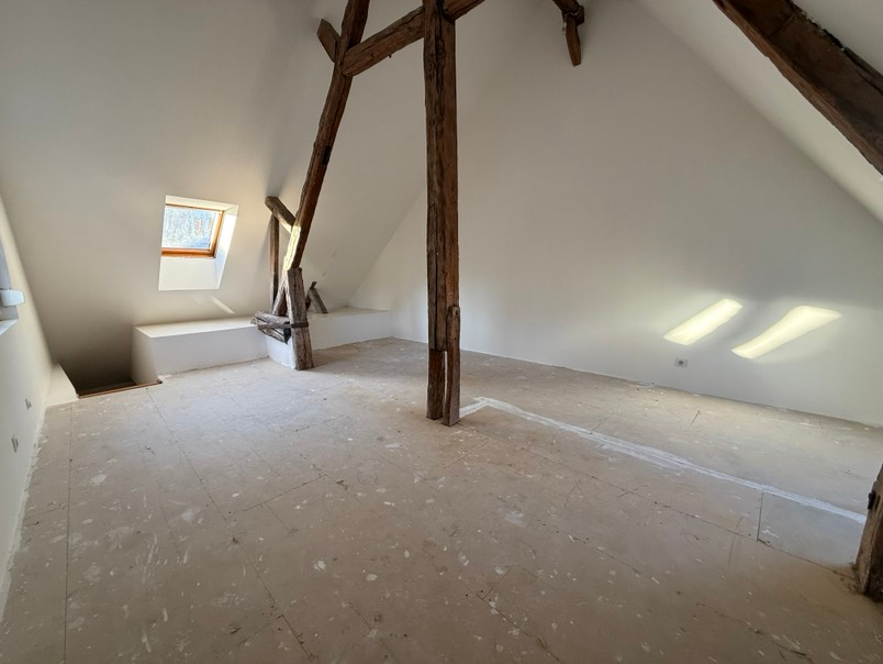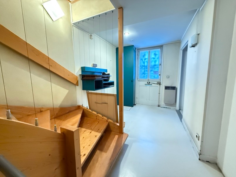 Le rez-de-chaussée se compose d'une entrée qui dessert une salle d'attente, un laboratoire, une salle de soins avec un bureau attenant, ainsi qu'un WC. À l'étage, une grande pièce avec un point d'eau offre des possibilités d'aménagement, tandis qu'une autre pièce lumineuse mène au dernier étage. Ce niveau est composé d'une grande pièce avec charpente apparente, offrant la possibilité d'être divisé en deux espaces distincts.