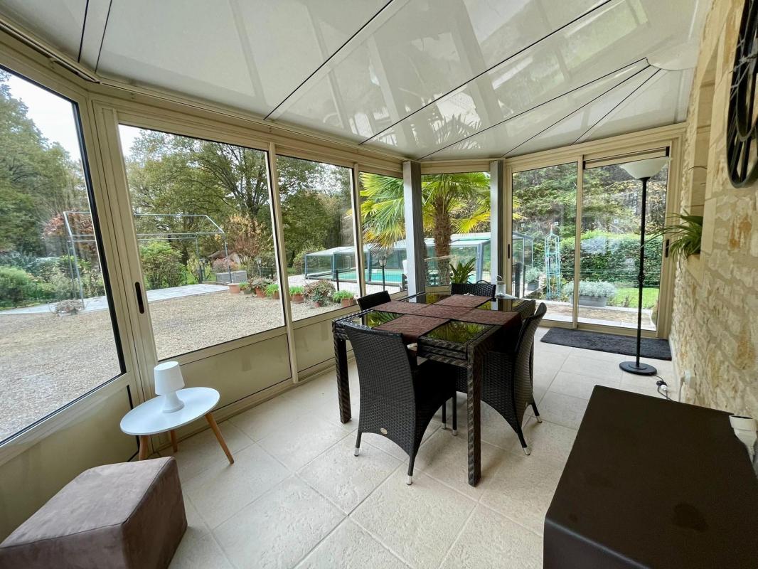 BERGERAC : Dans un environnement calme et recherché, venez découvrir cette magnifique propriété comprenant au rez-de-chaussée : cuisine, salon/salle à manger, trois chambres, deux salles de bains, une salle d'eau, un cellier, et à l'étage dans le pigeonnier, vous trouverez un bureau.