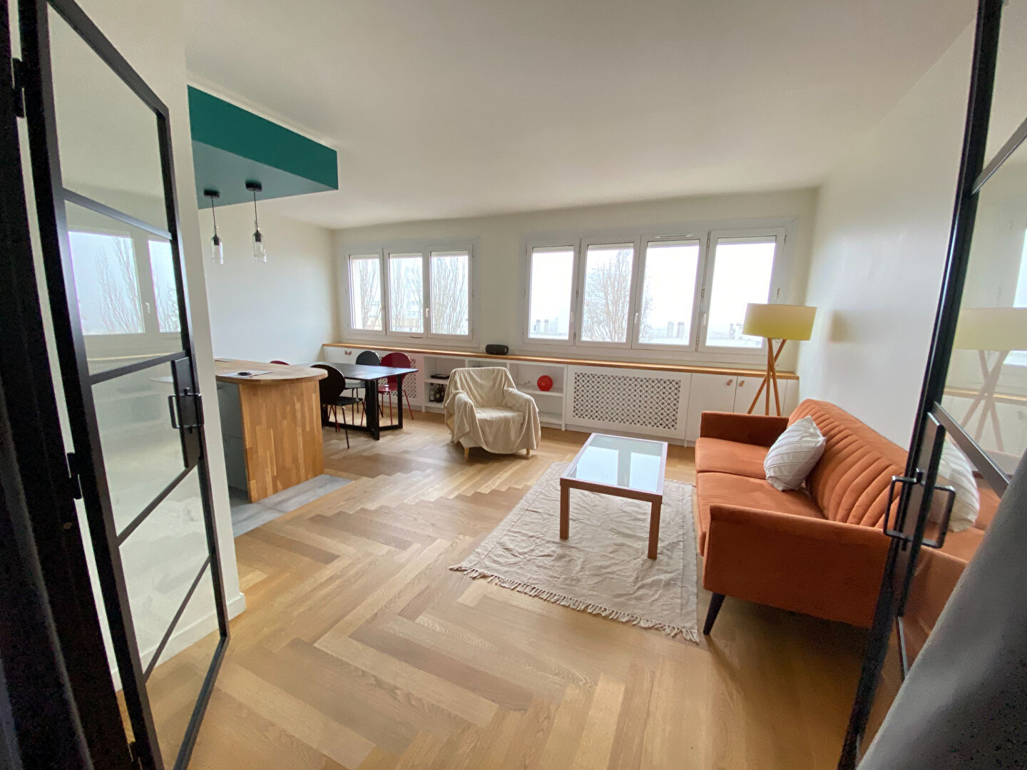 Aubervilliers, à moins de 5 minutes à pied du métro ligne 12, vue imprrenable sur le Sacré-coeur , la Tour Eiffel et le bassin de la Villette, dans une résidence calme et sécurisée avec gardien résident.