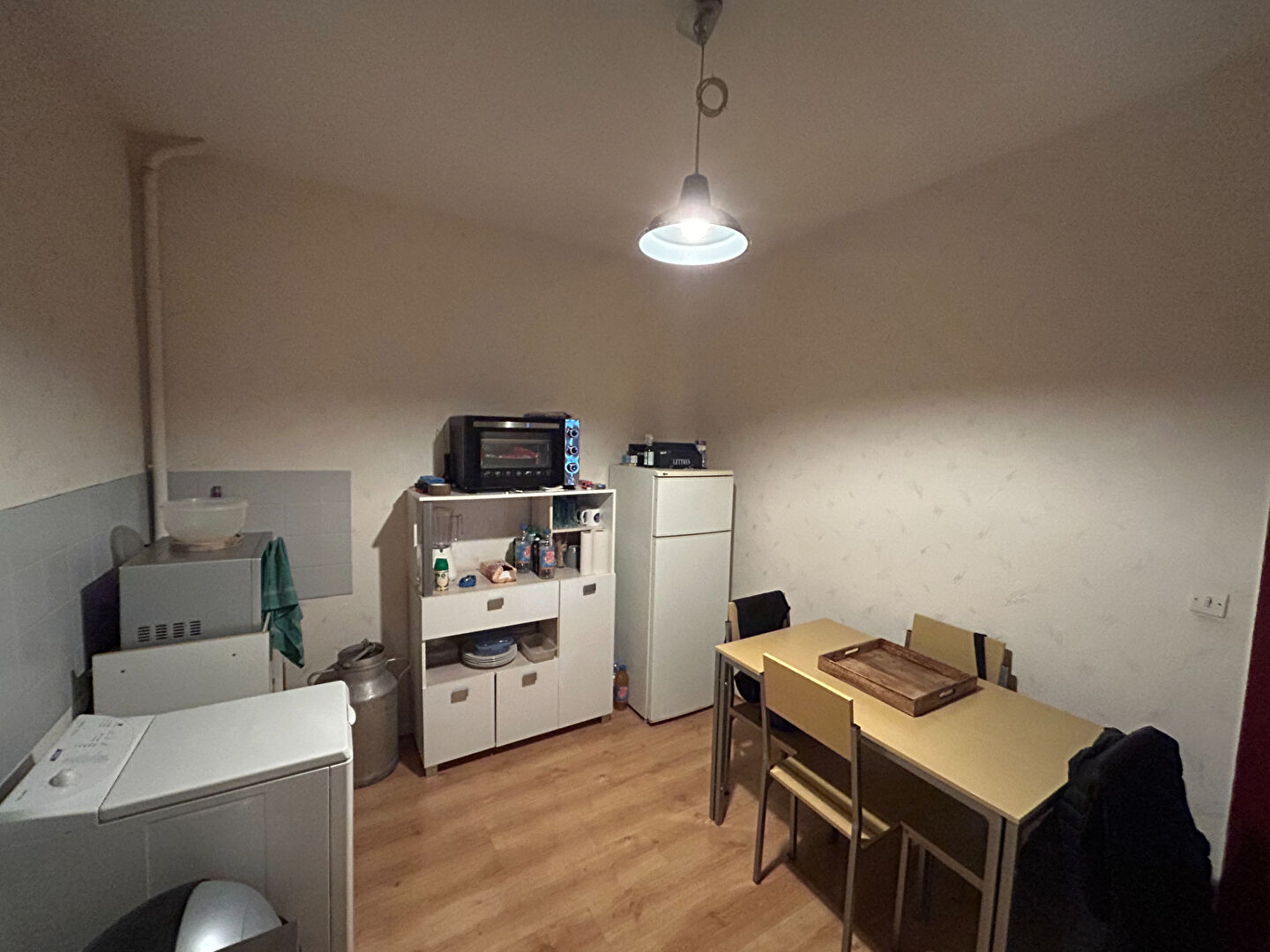En RDC : un local commercial loué avec une surface de vente, une cuisine, des sanitaires.