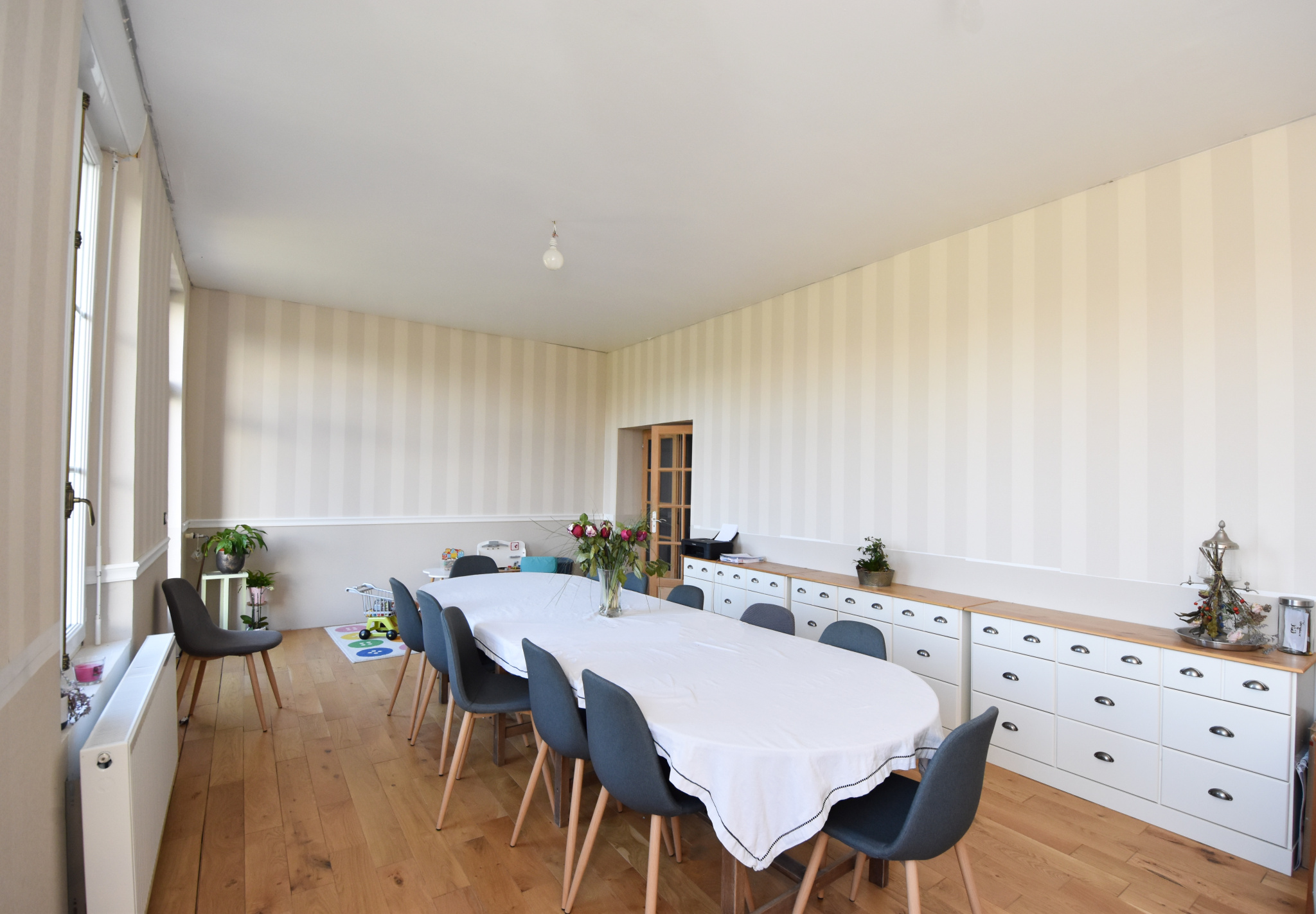 À l'étage, un palier dessert sept chambres, un WC indépendant et un espace prévu pour l'ajout d'une salle de bain.