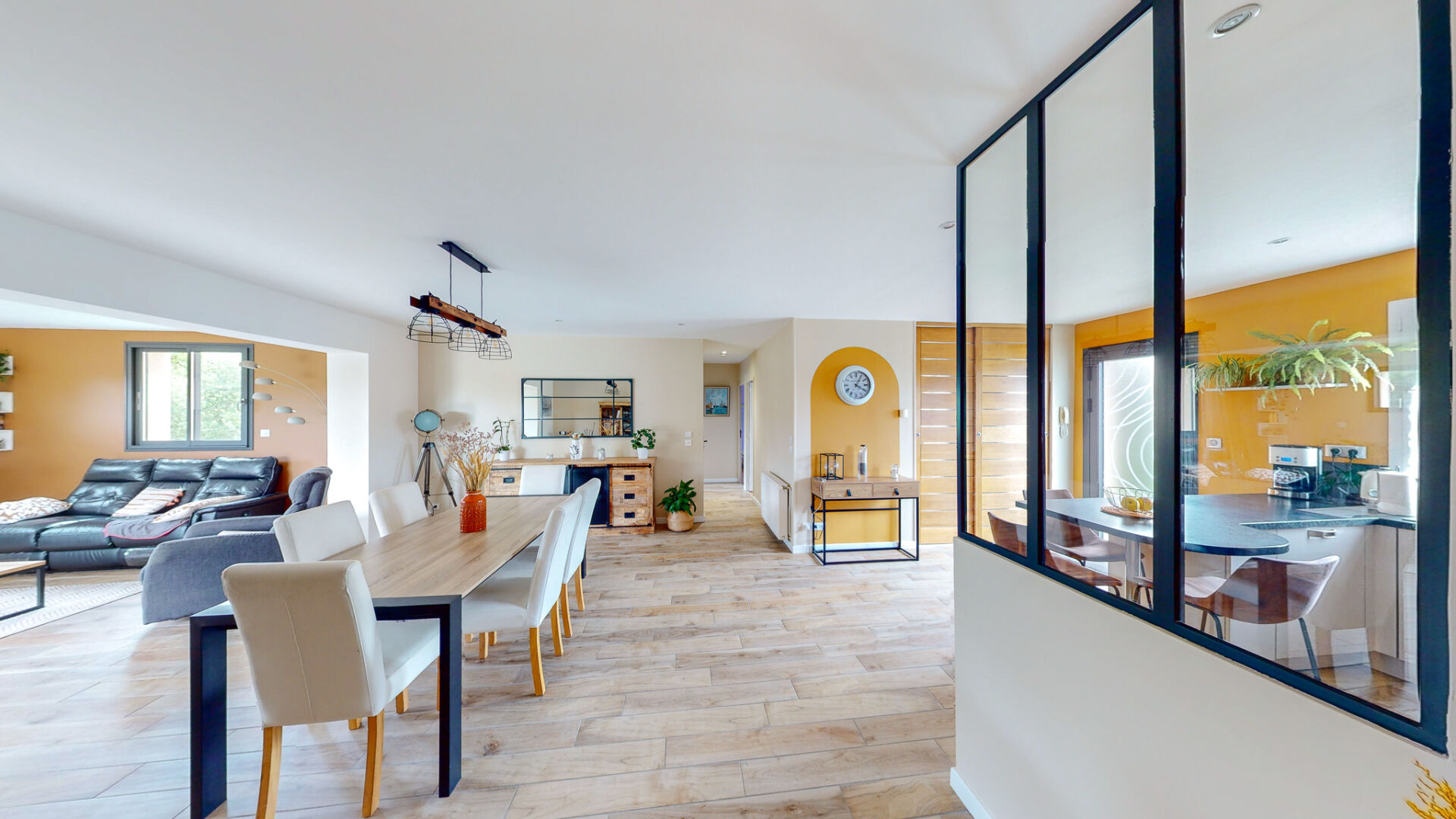 Vous habiterez dans une maison de 2001 agencée et décorée avec goût, sous le charme de sa pièce de vie de plus de 60 m² et de la lumière grâce à une triple exposition.