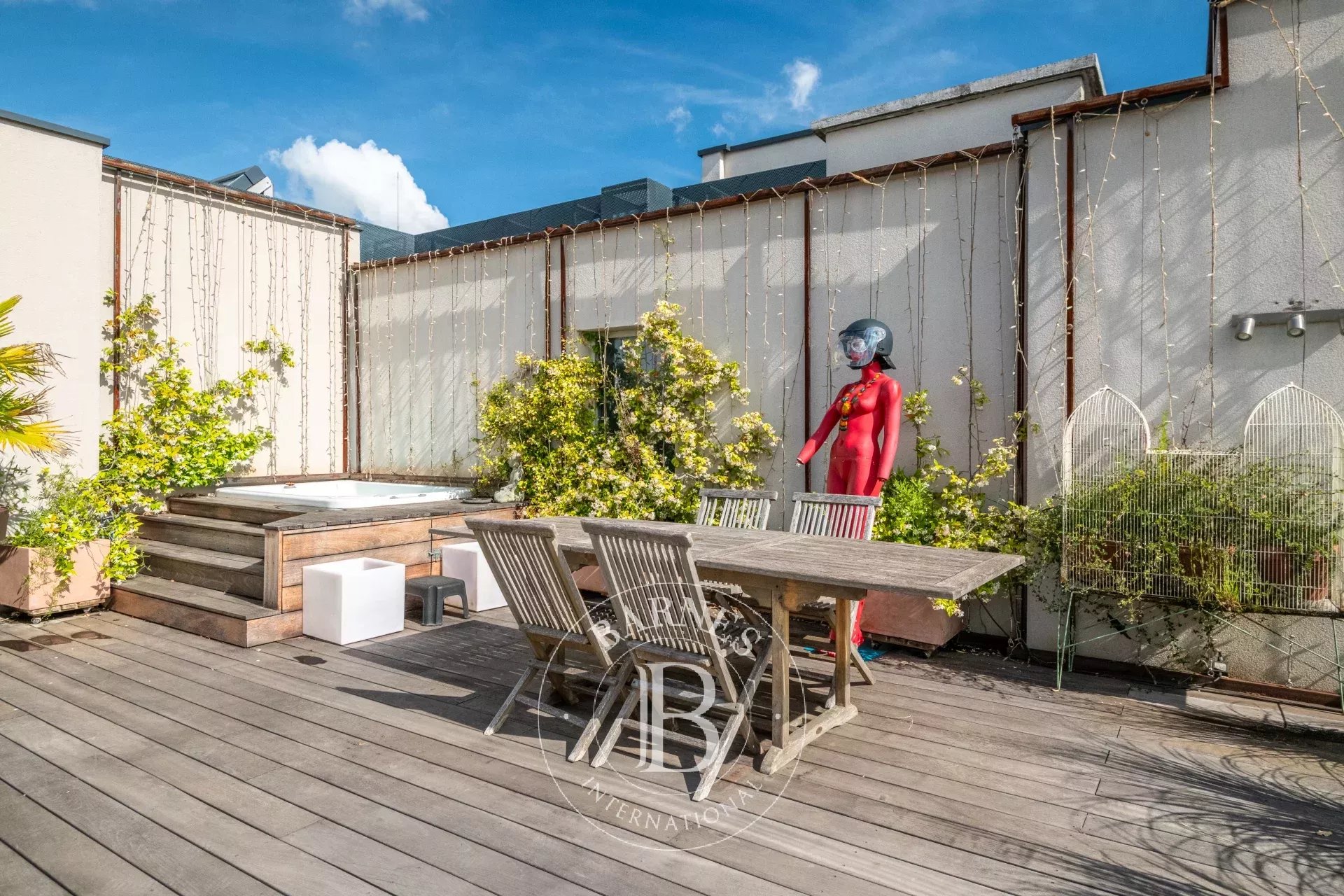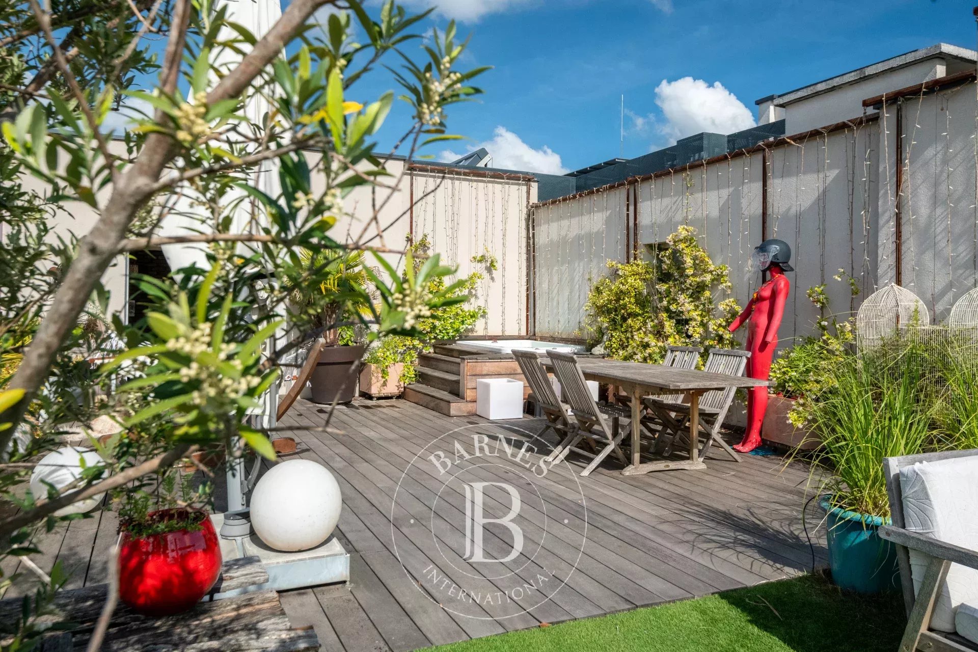 Depuis le salon-séjour, vous accédez à la terrasse équipée d'un jacuzzi, d'un deuxième espace de vie entouré de plantes aromatiques et leur arrosage automatique. Sans vis-à-vis. Possibilité de cuisine d'été.