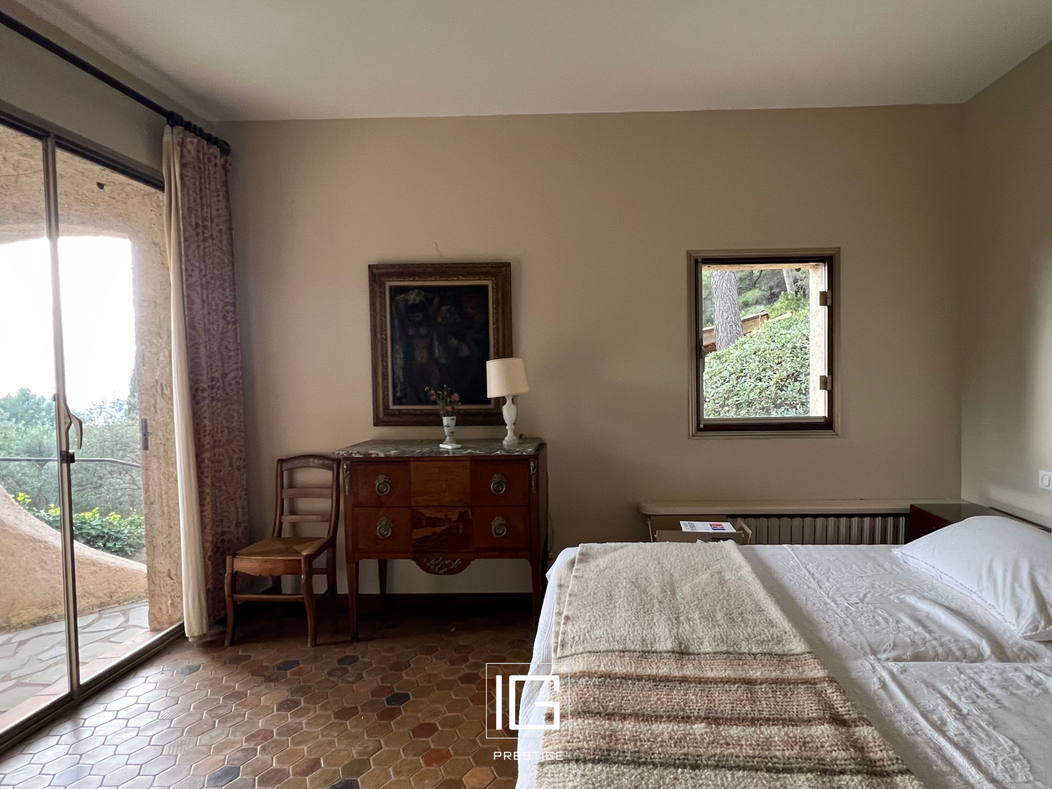 La maison propose une agréable pièce de vie lumineuse ouverte sur les extérieurs, deux chambres de plain-pied avec salle d'eau et salle de bain pour un confort optimal au quotidien. À l'étage, deux chambres supplémentaires, une salle de bain compose l'espace nuit. Une pièce bibliothèque/bureau, baignée de lumière, donne accès à une charmante tropézienne surplombant le jardin