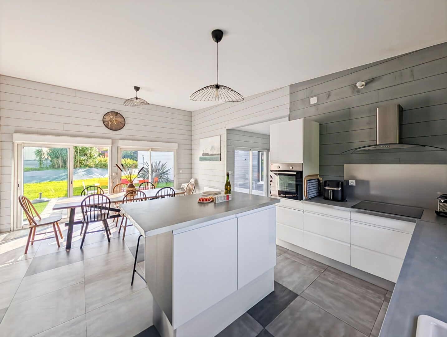 Un salon séjour tourné vers la terrasse exposée Sud vient prolonger la salle à manger.