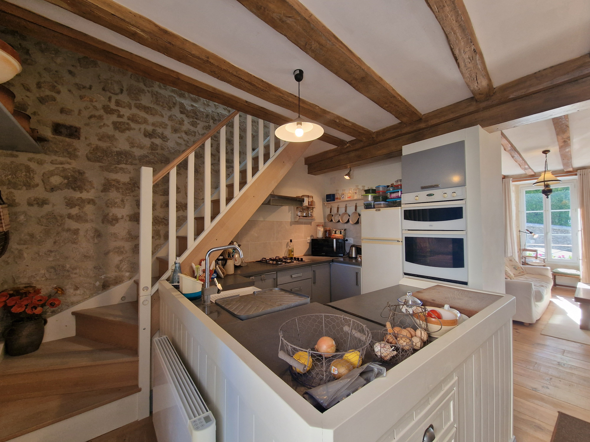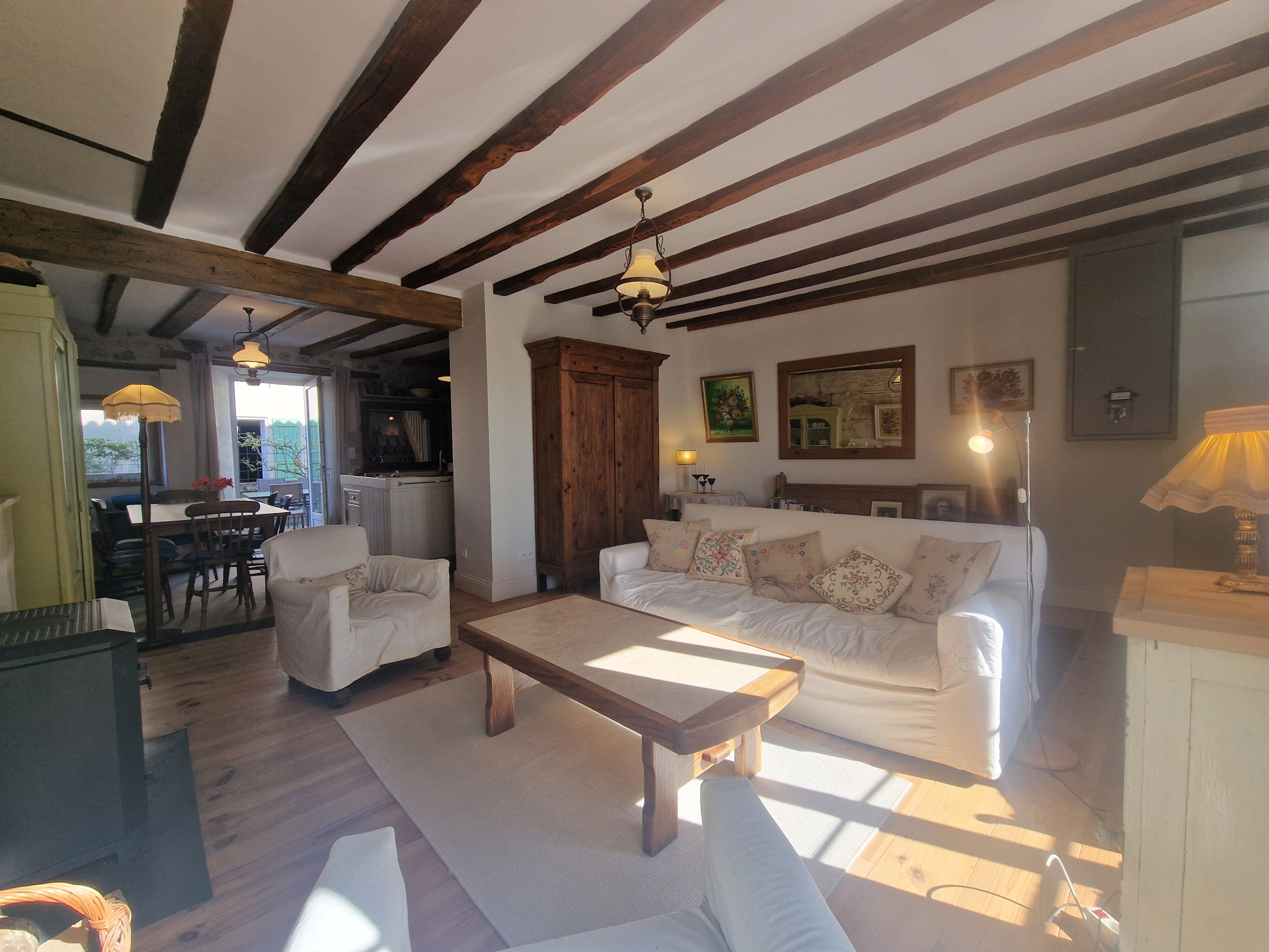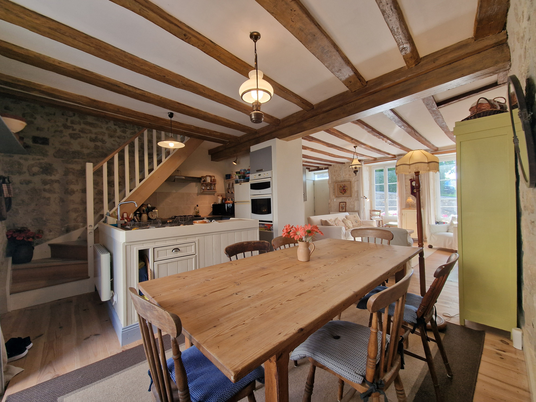 Au coeur du bourg de VILLEBOIS-LAVALETTE (16320). Charmante maison de bourg mitoyenne avec une terrasse en position dominante. L'ambiance est très cosy sur environ 110 m2 habitables plus l'ancien grenier aménagé en chambre mansardée. Séjour très agréable avec partie cuisine ouverte sur coin repas et salon. Salle d'eau récente. Ce rez-de-chaussée s'ouvre sur une terrasse avec vue imprenable. Le premier étage met à disposition deux chambres et une salle de bain. Au deuxième étage chambre avec point d'eau. Sa situation au coeur du village, son jardin ensoleillé, la vue ( bien qu'il y ai un vis à vis) sont des atouts indéniables. C'est une maison de caractère !