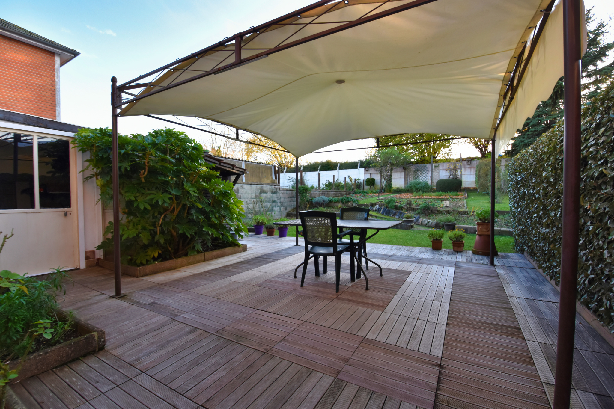 Les extérieurs comprennent un garage, une grande terrasse en bois exotique avec pergola et store banne, ainsi qu'un superbe jardin clos, arboré et idéalement exposé.