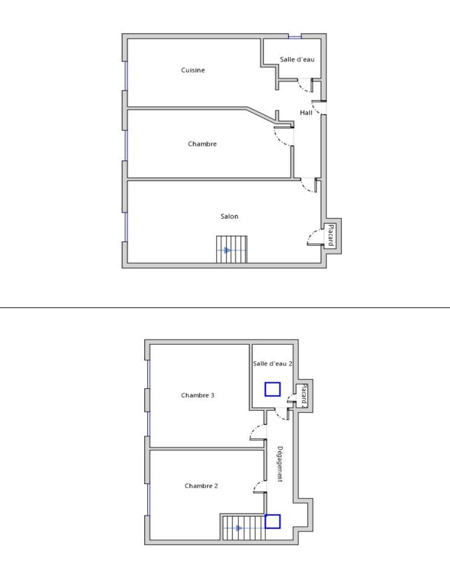Il se compose : Au premier niveau : D'un séjour, une cuisine, une chambre, une salle d'eau. Sur le deuxième niveau deux chambres et une seconde salle d'eau.