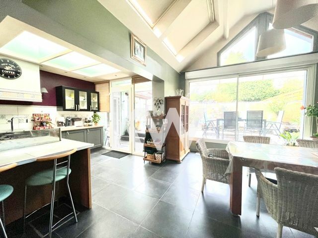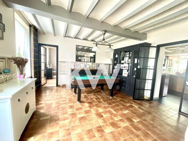 Au rdc : un salon salle à manger avec cheminée, une vaste cuisine équipée avec son coin dinatoire, une salle de bains, 2 chambres.