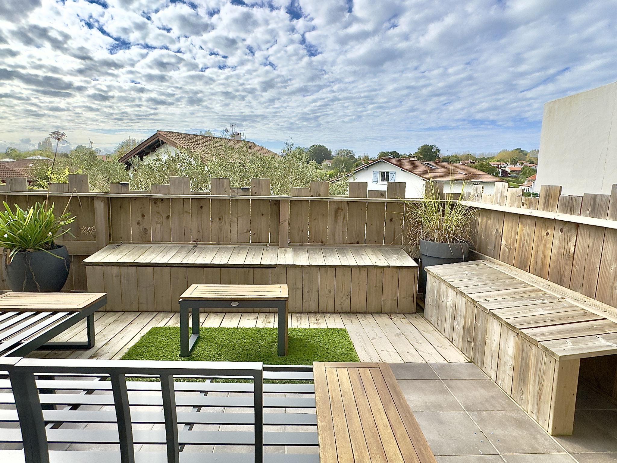 A Bidart, au calme dans le lotissement HIRI ARTEA, vous serez séduit par cette belle maison et ses 2 appartements élevées sur un terrain de 5 ares avec piscine. Cette maison en parfait état dans un environnement joliment paysagé vous propose: