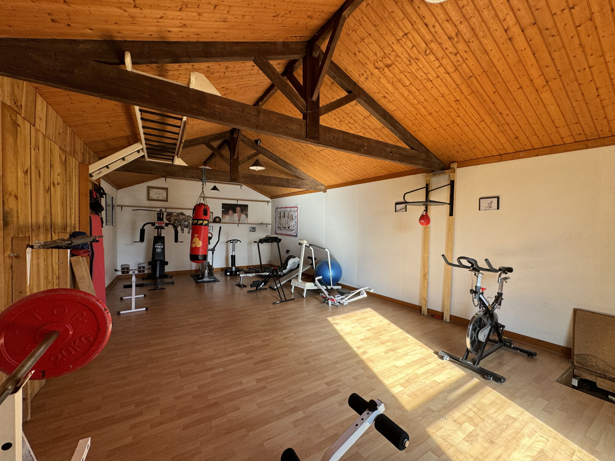 Dépendance en pierre à usage de stockage au rez de chaussée (45m2) et à usage de salle de jeux/sports à l'étage (45m2).