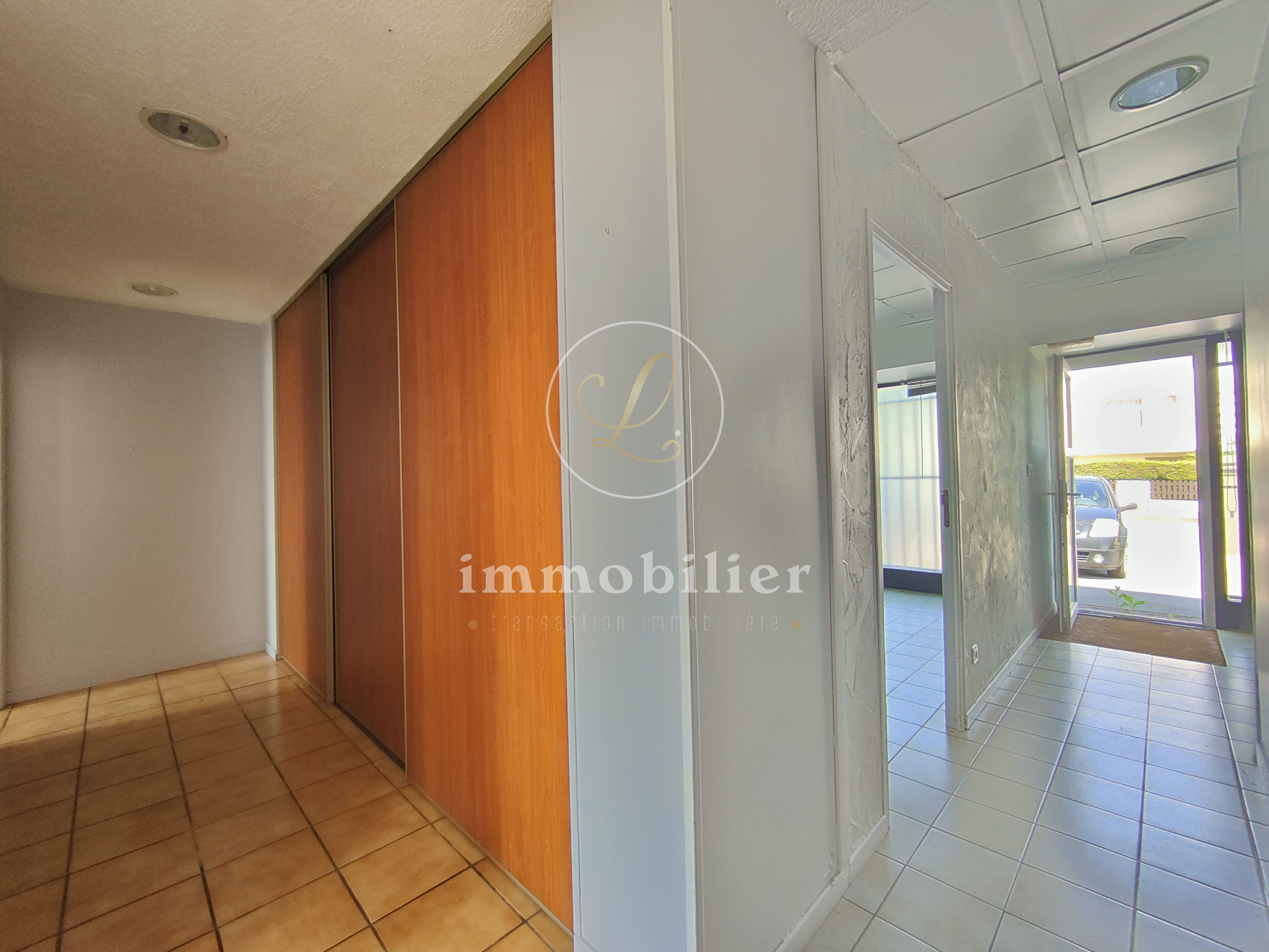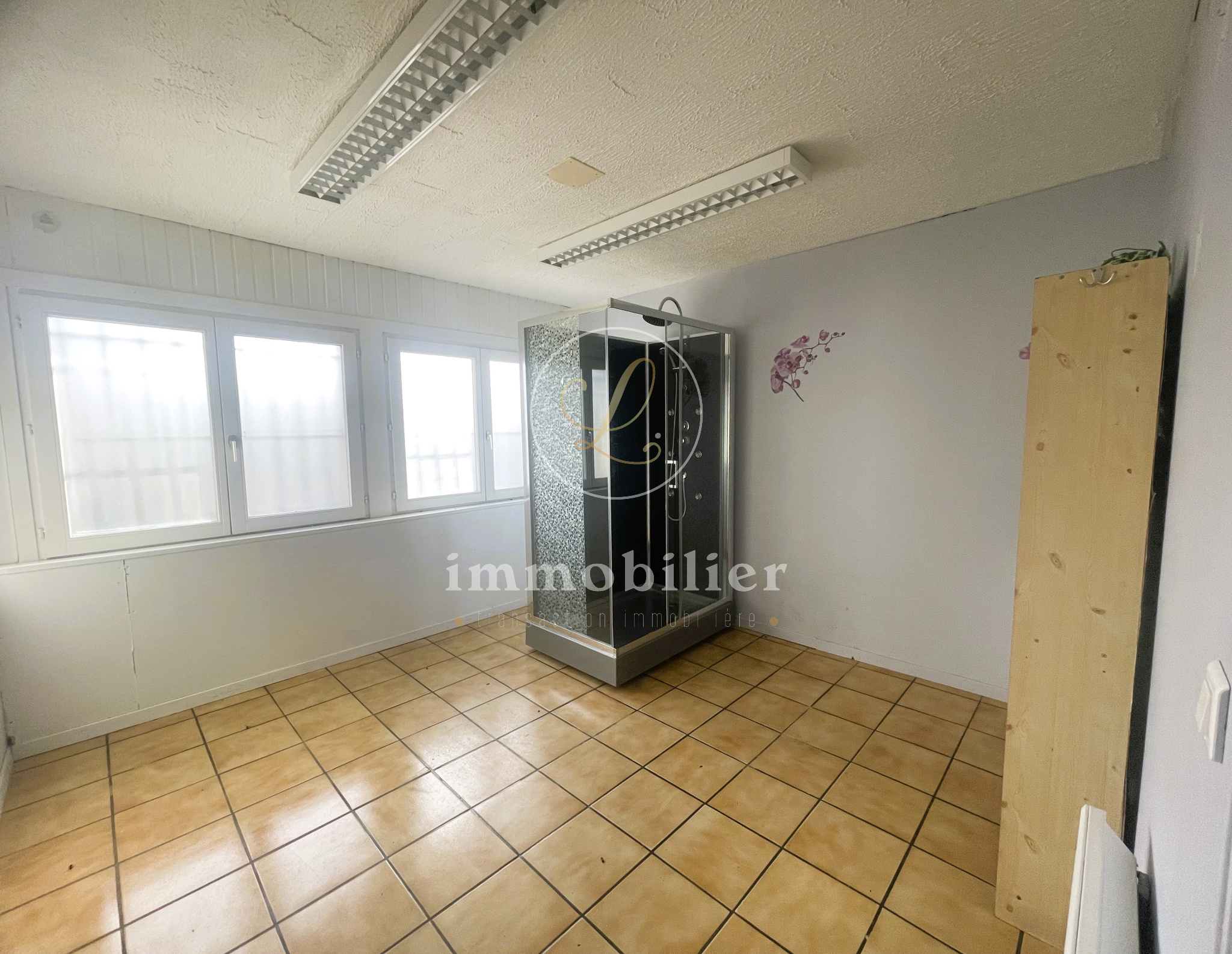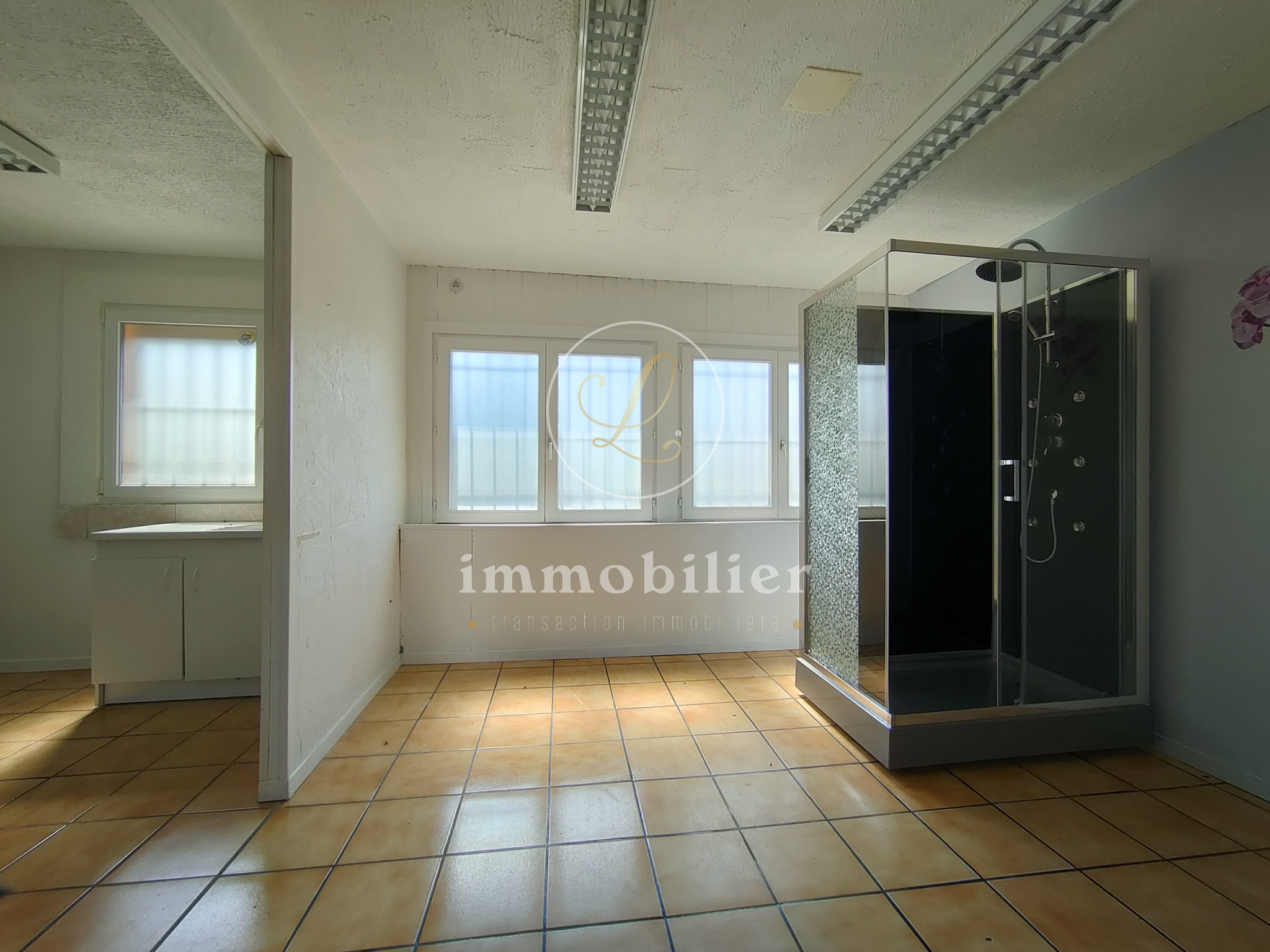 - Une grande entrée, une pièce avec vitrine, deux bureaux actuellement aménagés avec un évier et une douche, et des wc séparés.