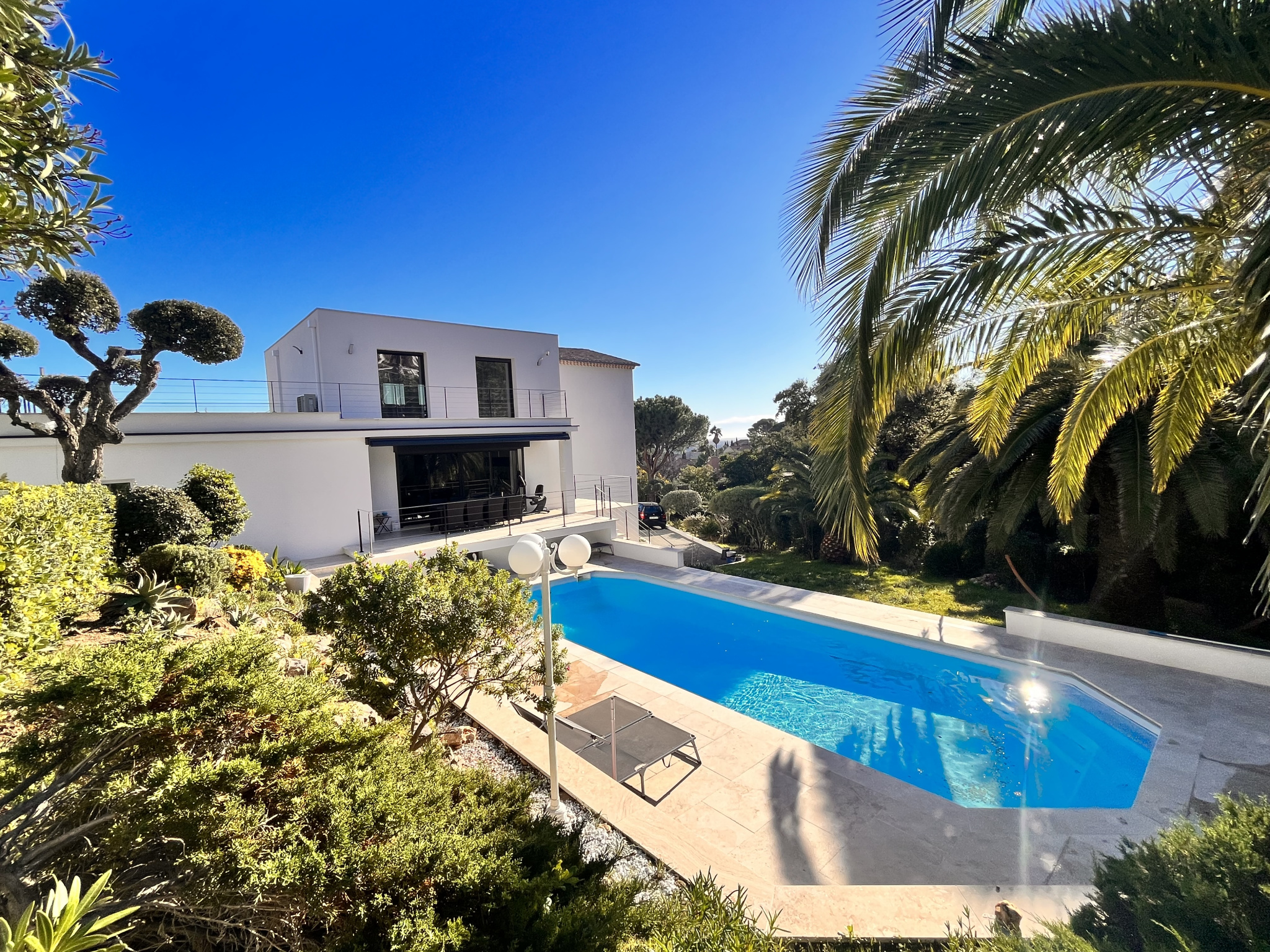 Superbe villa contemporaine entièrement rénovée en 2021 avec des prestations et matériaux de qualités sur un vaste terrain paysager de 1585m2 avec piscine 12x4m. Concernant la villa, vous trouverez de plain pied : un espace de vie avec salon et salle à manger traversant et lumineux donnant côté Ouest sur une spacieuse terrasse avec vue sur la piscine et côté Est sur la mer. Cuisine ouverte équipée, 2 chambres, une grande salle d'eau avec toilettes. A l'étage : vous serez séduits par cette superbe pièce de vie supplémentaire avec accès sur une terrasse avec magnifique vue sur la baie de Saint Raphaël ainsi que sa suite parentale (chambre, salle de bains complète, placards). En rez de jardin : grand appartement indépendant de 3 pièces idéal pour recevoir amis et famille. Double garage. A découvir ! Les informations sur les risques auxquels ce bien est exposé sont disponibles sur le site Géorisques : www.georisques.gouv.fr