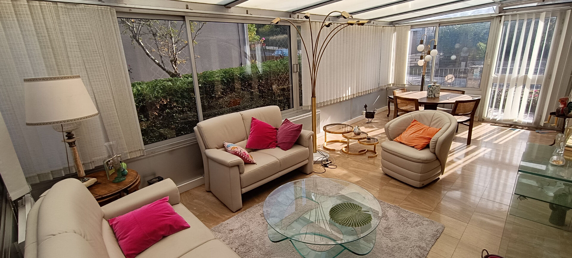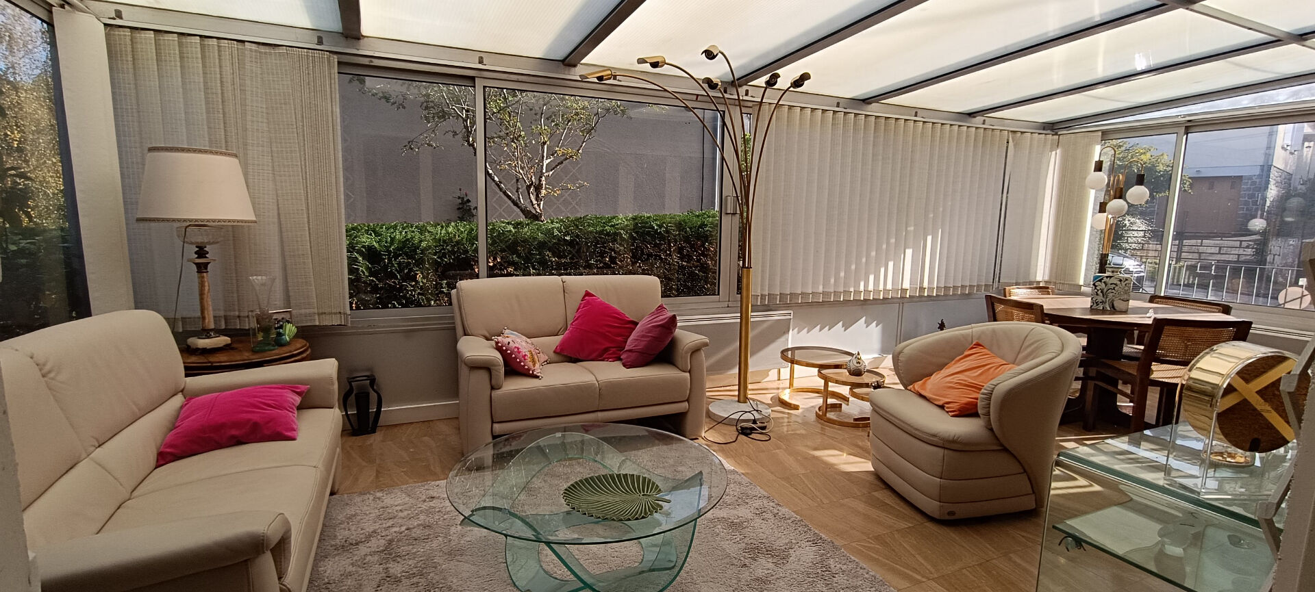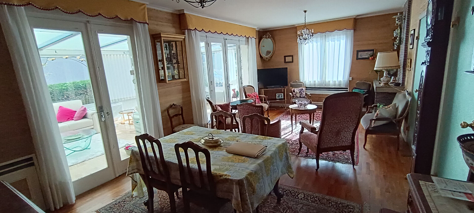 Séjour avec véranda et cheminée ouverte, 6 chambres, 3 salles d'eau, 3 wc , cuisine aménagée
