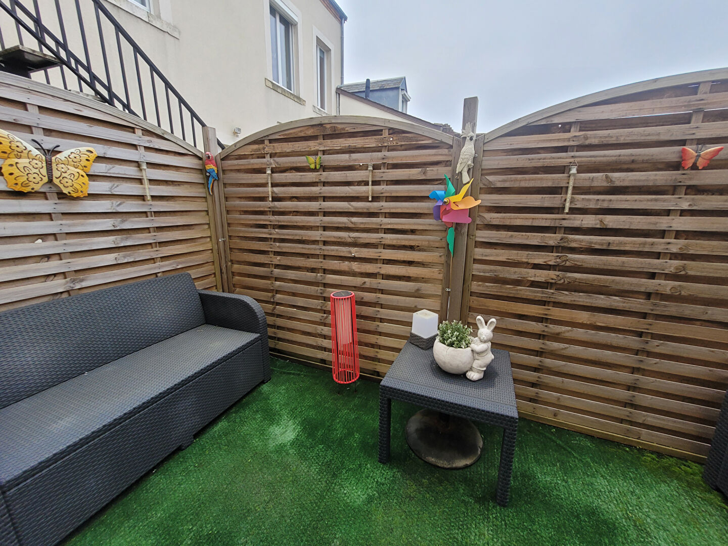 La visite commence au rez-de-chaussée avec une cuisine moderne aménagée et équipée, un salon-séjour donnant sur la terrasse, wc individuel.