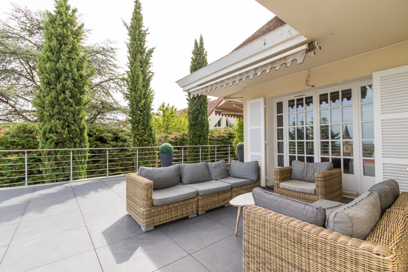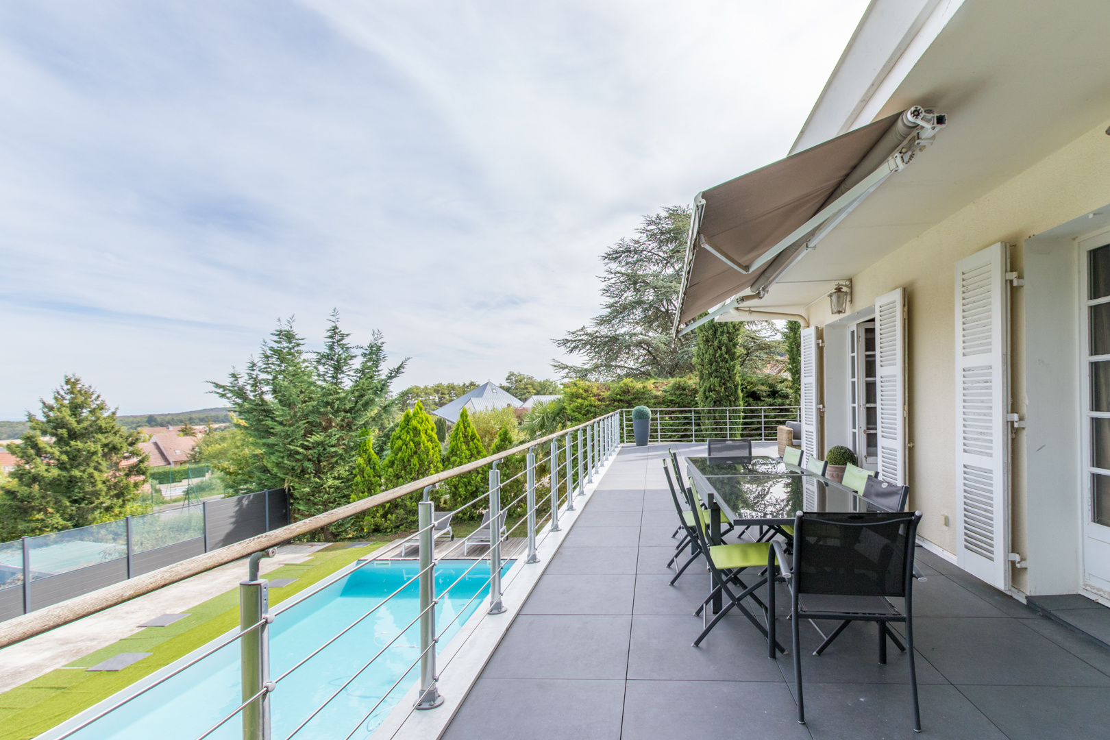 Vaste demeure cossue avec piscine, située dans un quartier résidentiel, grandes pièces à vivre donnant sur terrasse avec vue imprenable, cuisine spacieuse, huit chambres, huit salles de bains. À Découvrir !