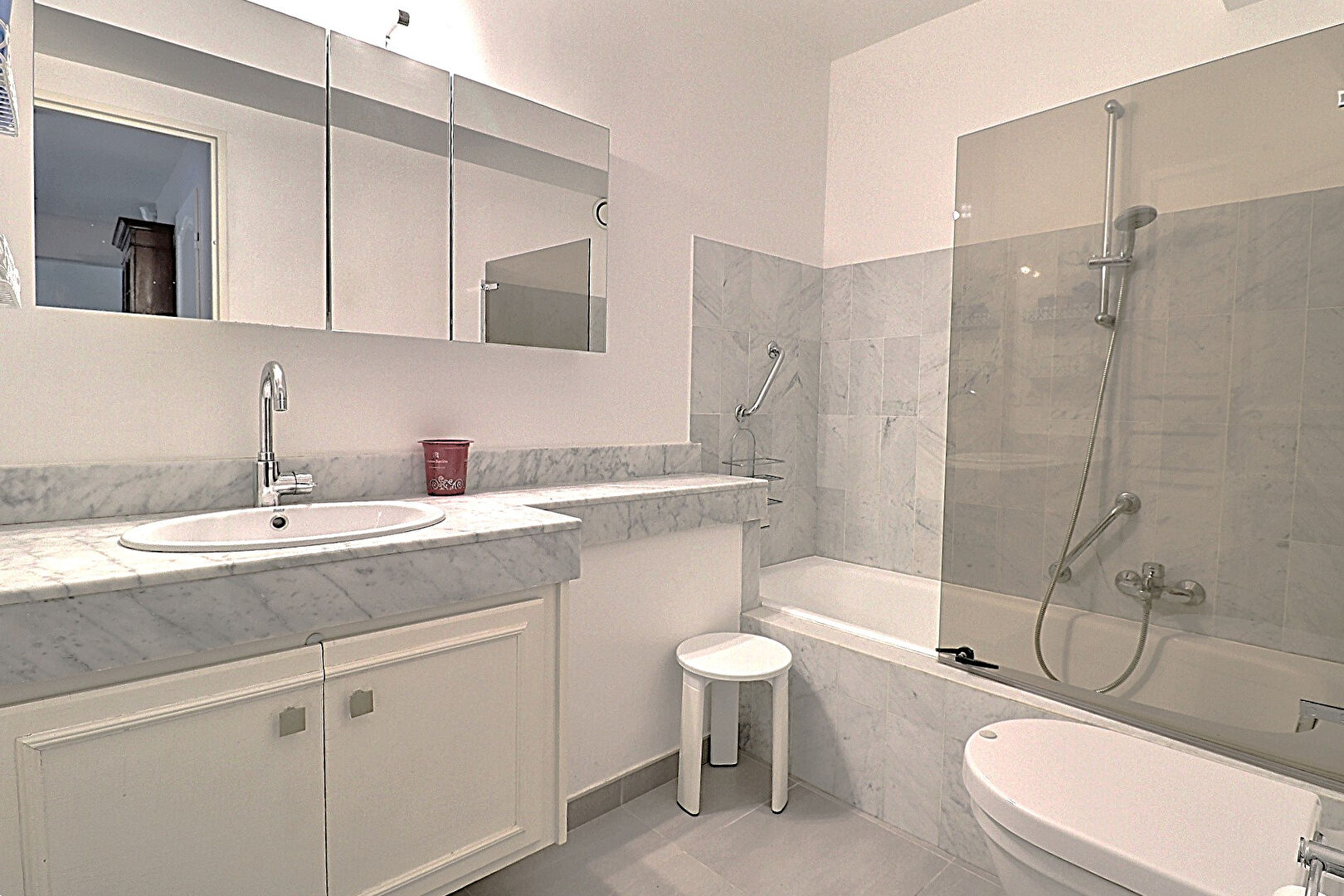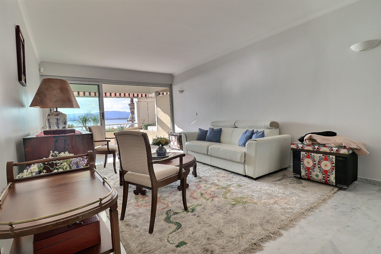 Triangle d'or - Appt traversant rénové par architecte offrant une superbe vue mer, toutes commodités à pied. Le séjour exposé S-O ouvre sur une agréable terrasse face mer. La salle à manger , la cuisine et la chambre donne sur une terrasse et jardin, ce qui permet de profiter à tout moment des espaces extérieurs. Une salle d'eau avec WC. Nombreux rangements. Possibilité d''aménager facilement une deuxième chambre et un 2e WC. La cave et la place de parking en sous-sol sont accessibles directement par ascenseur. Ce bien immobilier coup de coeur offre un environnement très agréable et proche de tout, au sein d'une résidence très prisée. Aucun travaux à prévoir.
