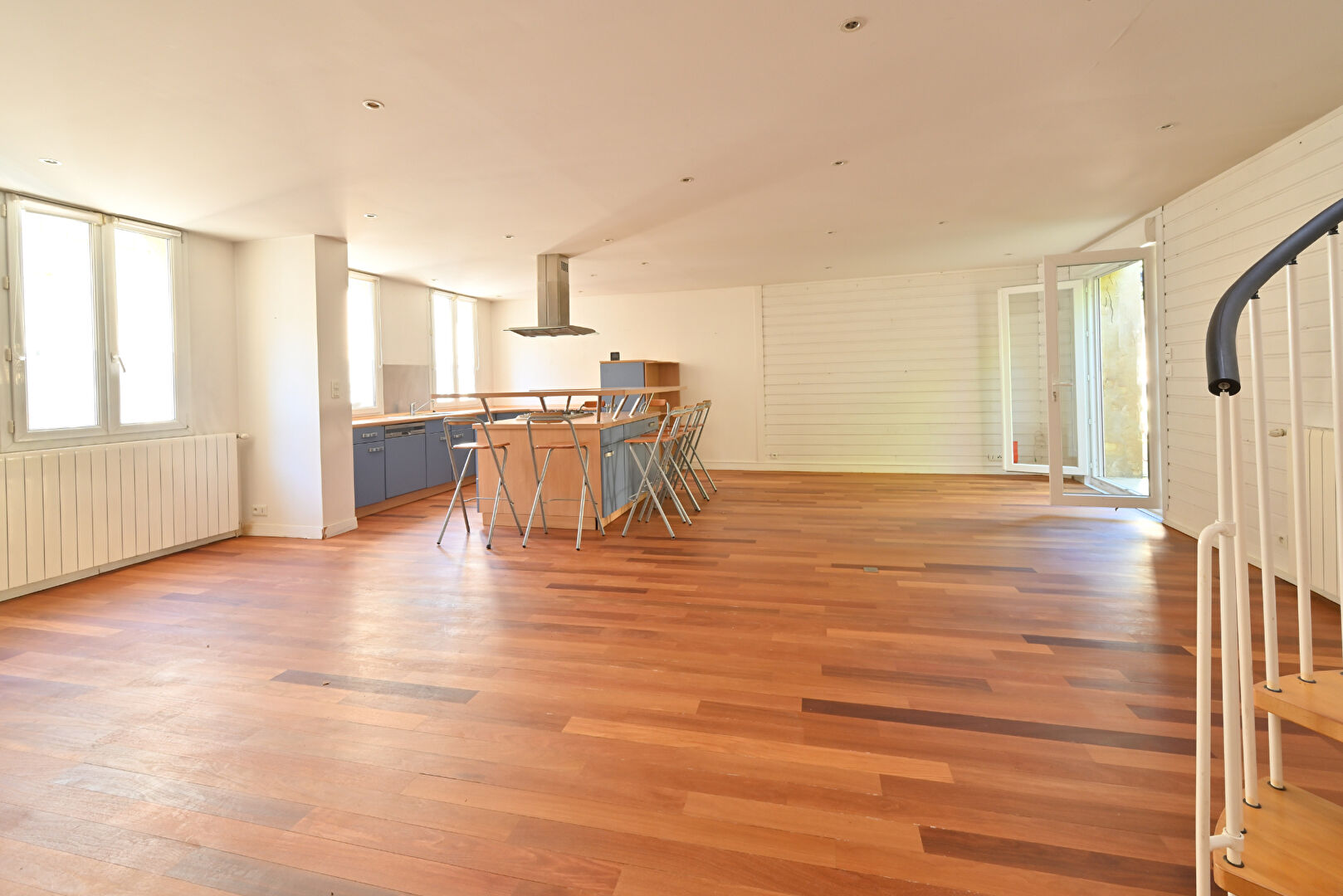 Elle dispose au rez-de-chaussée d'une belle pièce de vie traversante de 54m2, agrémentée d'une cuisine ouverte équipée avec îlot central, donnant sur un jardin de 77m2.