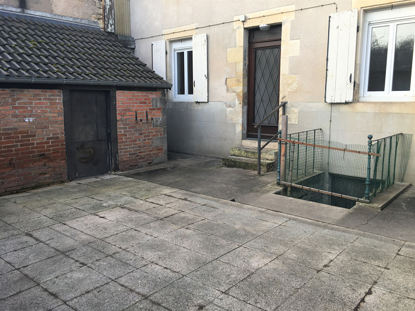 Courette et dépendances, trois garages et un jardin commun.