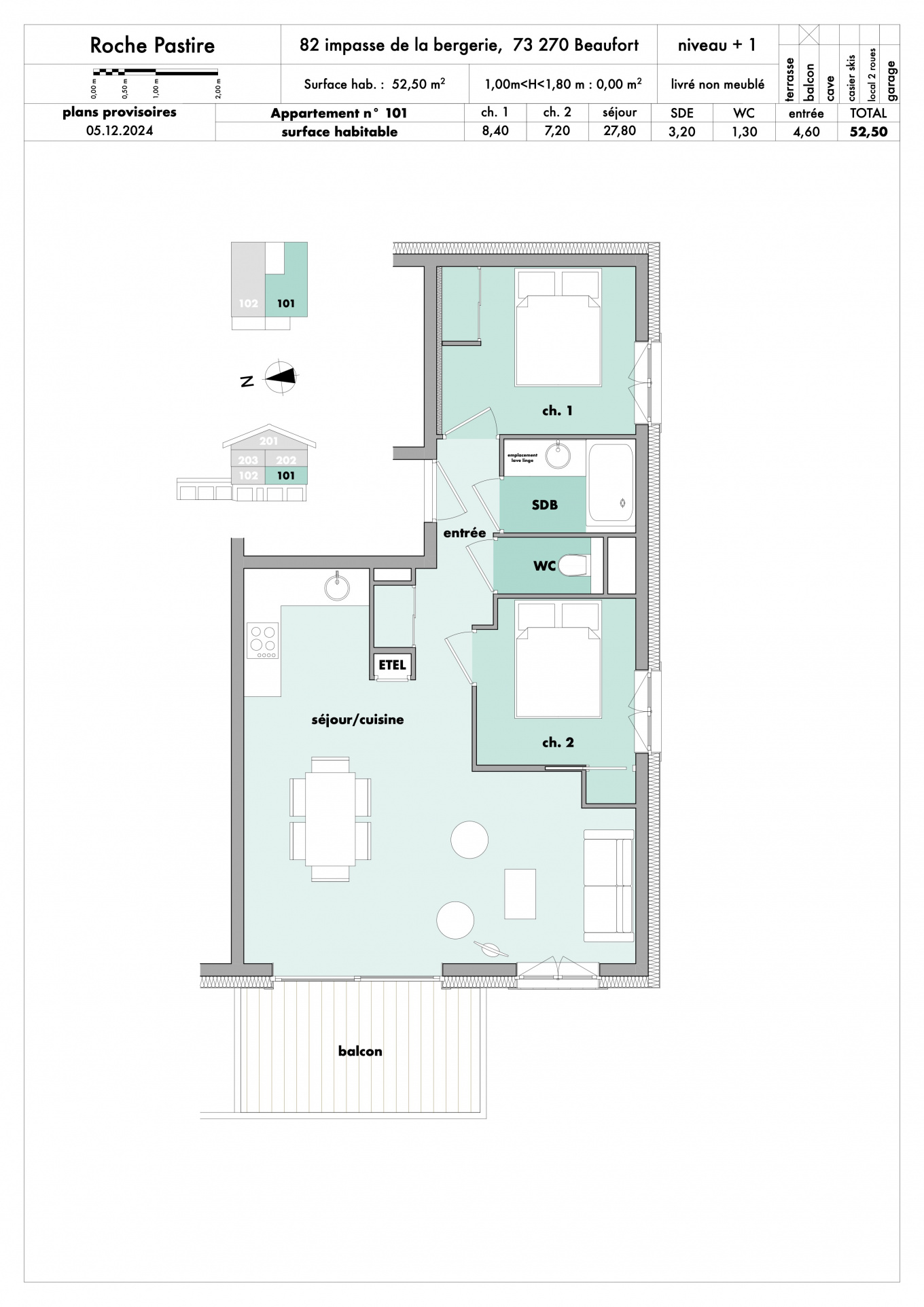1 T5 avec charpente apparente. Tous les appartements bénéficient de balcons ou terrasses spacieux, idéals pour profiter de l'extérieur et des vues panoramiques.