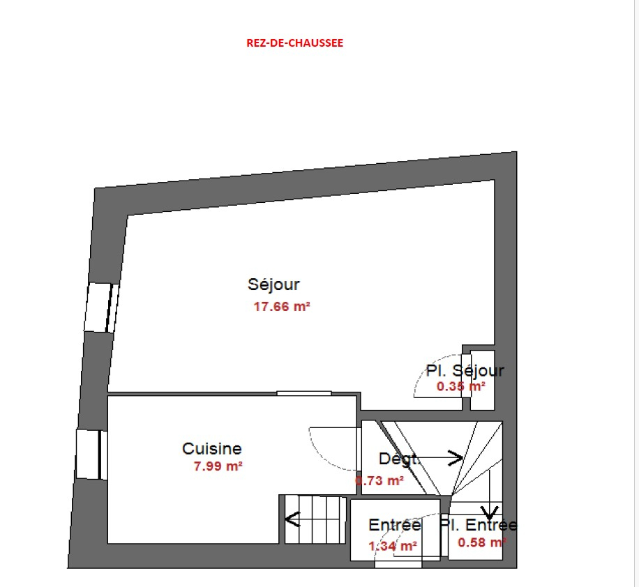 1er étage : Une cuisine et un séjour, prêts à être repensés selon vos envies.