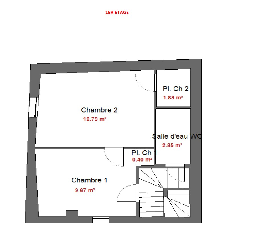 2ème étage : Deux pièces en enfilade offrant diverses possibilités d'aménagement, ainsi qu'une salle d'eau.