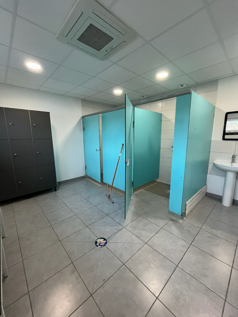 Il comprend, 3 surface ouverte, chauffées de 55, 85 et 110 m², un local technique, une réserve et des sanitaires séparés avec 4 douches, vestiaires et 2 w.c, le tout en plain-pied avec accès personnes à mobilité réduite. Ce bien est libre d'occupation et disponible rapidement. Il peut accueillir plusieurs activités et/ou transformation suivant la destination attendue (cabinet médicale, bureaux, profession libérale + logement...)