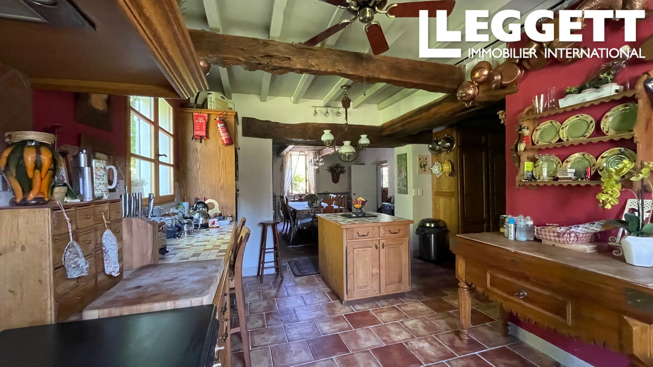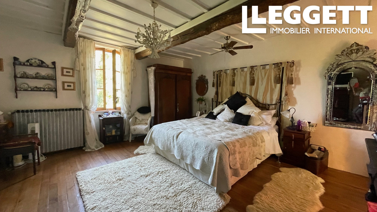 A32166MAE31 - Au bord d'une petite rivière, dans un hameau à 1 heure de Toulouse, maison de campagne de 183 m² habitables sur 4720 m² de jardin plat et clos, avec 3 grandes chambres, 3 salles de bains, 3 wc, grand séjour/cuisine, salon avec cheminée, terrasse couverte, buanderie, dépendances, garage, piscine au sel de 12 X 6 avec volet roulant intégré.