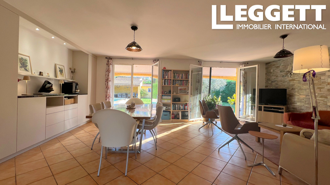 A33075CRR83 - À Flayosc, cette maison moderne de 113 m², construite en 2005, est nichée au coeur d'un jardin paysagé de 1210 m². La propriété offre des espaces de vie lumineux avec quatre chambres et une vaste pièce à vivre. Le jardin, entièrement clos, est bien aménagé et dispose d'une piscine de 8 x 4 m, de plusieurs terrasses ombragées, ainsi qu'un garage de 17 m².