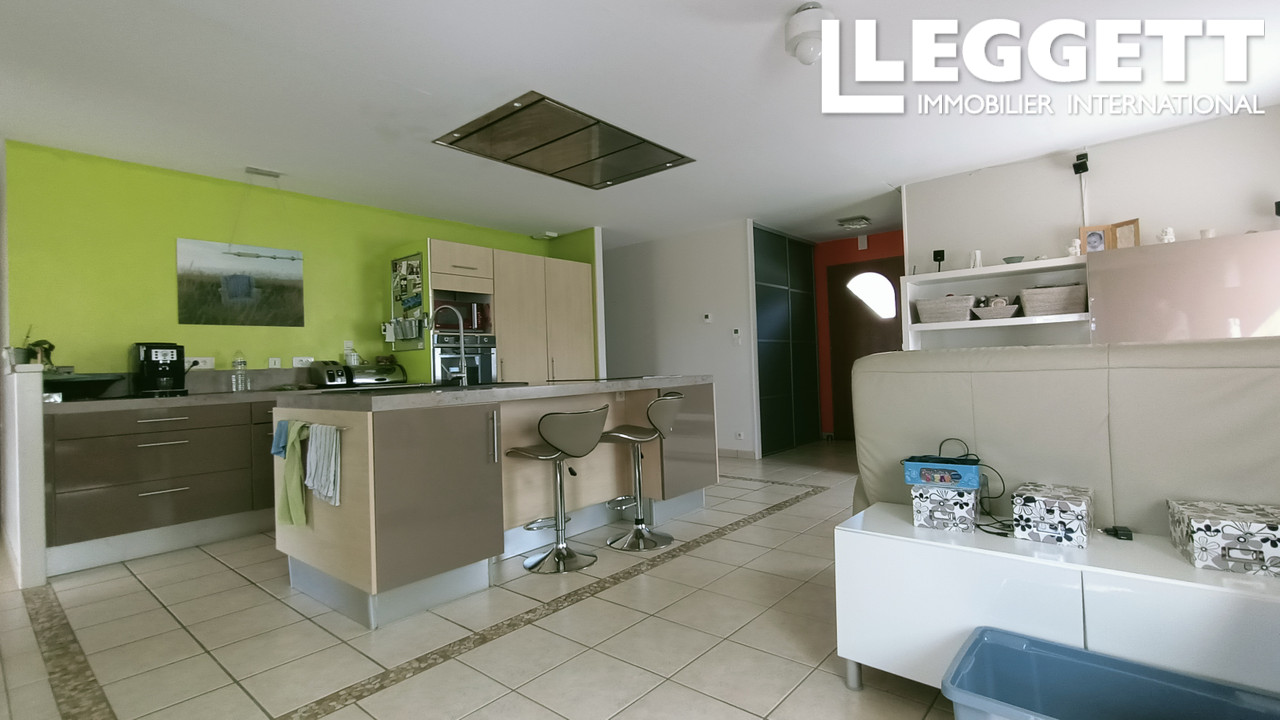 Dès l'entrée, une grande pièce de vie baignée de lumière naturelle vous accueille, alliant salon, salle à manger et cuisine dans une ambiance conviviale. Le chauffage au sol apporte un confort optimal dans cet espace. La maison dispose de chambres spacieuses, d'une salle de bains moderne, ainsi que de prestations pratiques : aspiration centralisée, cuve de récupération d'eaux pluviales de 5000L, et raccordement au tout-à-l'égout.