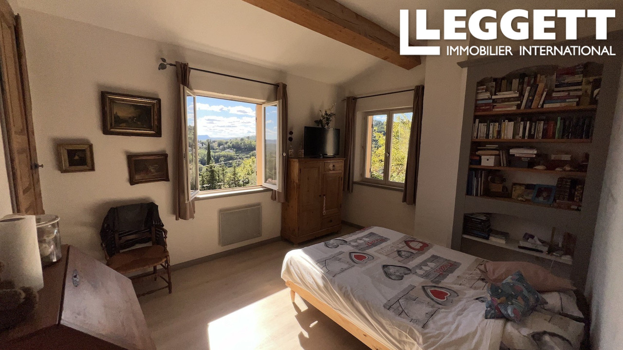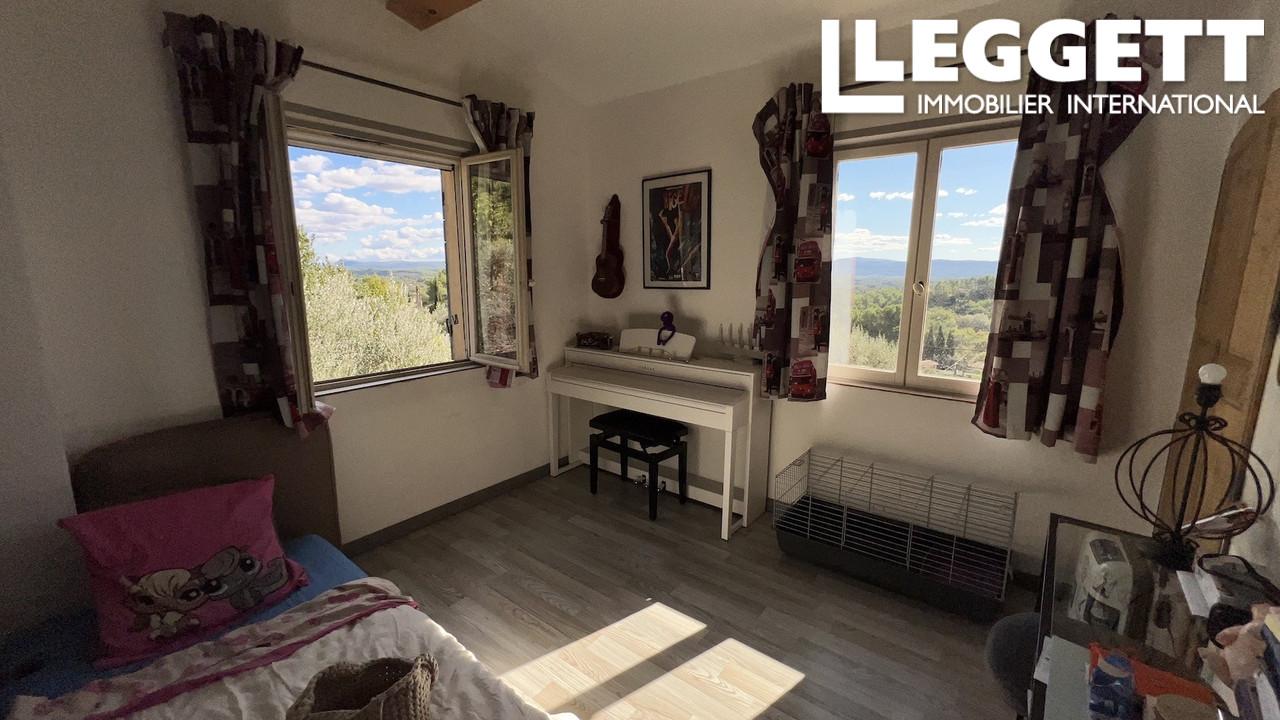 A33346GWI83 - Jolie Bastide Provençale proche du village de Cotignac et à environ 10 minutes à pied de toutes commodités, Cette adorable bastide est implantée sur un terrain clos de 930 m², arboré d'essences méditerranéennes. Sans vis à vis, au calme, en position dominante, elle offre une vue panoramique exceptionnelle et unique sur la campagne environnante. Le jardin dispose d'une piscine hors sol (possibilité d'installer une belle piscine). Entrée avec dégagement, séjour/salle à manger avec cheminée insert. Jolie cuisine provençale équipée, agréable terrasse avec sa treille côté sud, wc. A l'étage : 3 chambres, dressing, salle de bains, wc. Dans le jardin se trouve un petit bâtiment en pierre aménagé avec une chambre, salle d'eau et wc privatif. Garage attenant avec rangement et mezzanine. L'atelier (16 m²) également attenant peut être aménagé en chambre supplémentaire, bureau, etc. Située dans un quartier résidentiel recherché, cette maison aux matériaux de qualité bénéficie d'une exposition sud