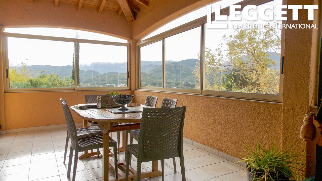 A32348CED11 - Cette propriété immaculée de 3 chambres, conçue par un architecte, serait la maison familiale idéale ou une retraite de vacances. Située sur une position élevée à la périphérie de la ville animée de Quillan, la propriété offre des vues panoramiques sur la Haute Vallée de l'Aude environnante et se trouve dans un endroit très paisible avec des jardins paysagers bien établis. Les lacs de baignade et de pêche ainsi que le supermarché se trouvent à quelques minutes de marche.