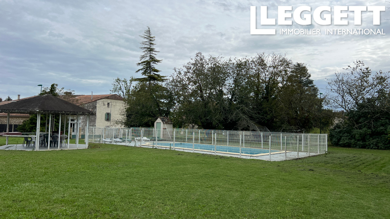 A32471GJP24 - Située au coeur d'un petit village a 4 km d'Eymet, une grande maison mitoyenne avec grand jardin clôturé et une piscine. La maison comprend 3 grandes chambres, un salon avec cheminée, une salle à manger et une cuisine, une salle de bain et wc au deux étages. Il y a la possibilité d'agrandir grâce a une dépendance déjà partiellement aménagée. Eymet at 4km, Bergerac 25km