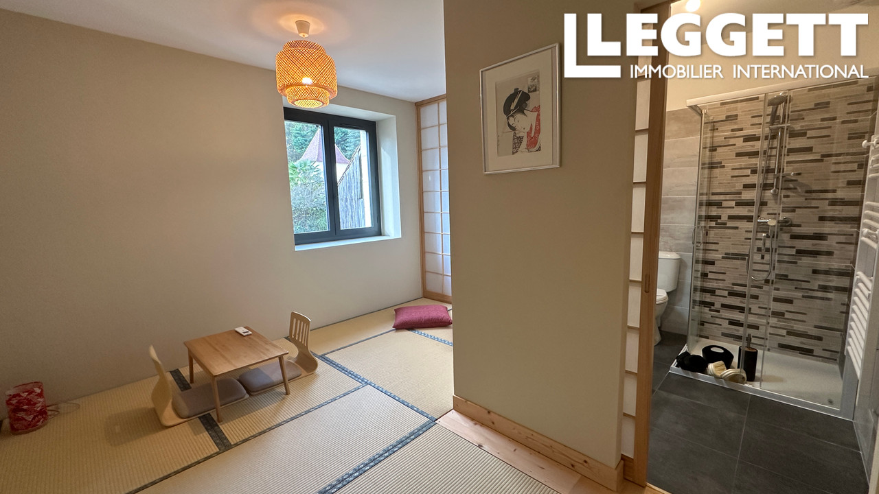La seconde maison, en cours de rénovation avec la toiture en réfection, propose environ 150 m² comprenant une cuisine et arrière-cuisine, un salon, trois chambres dont une en suite, deux salles d'eau et deux WC indépendants. L'électricité est partiellement refaite et deux fenêtres sont déjà en double vitrage. Le chauffage mêle bois, inertie électrique et pompe à chaleur.