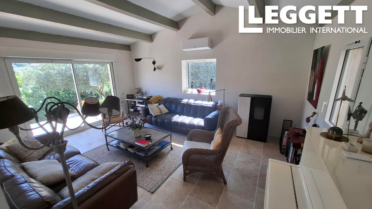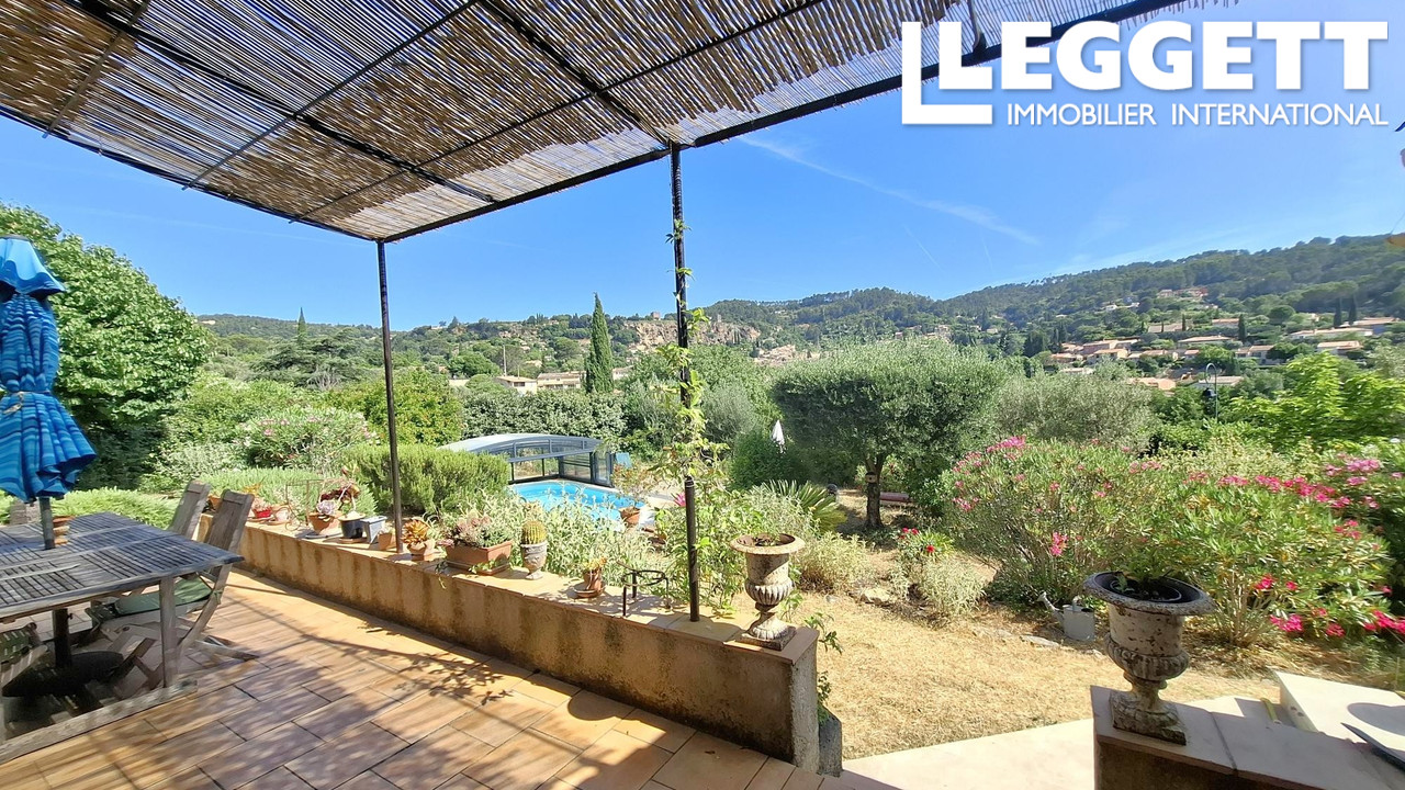A32338GWI83 - Belle maison de 4 chambres dans le célèbre village de Cotignac, en Provence. A 5 minutes à pied du centre de Cotignac qui est classé comme l'un des plus beaux villages de France. La propriété offre une vue fabuleuse, un jardin, un garage et une piscine. Il y a un spacieux séjour/salle à manger ouvert sur la cuisine, un deuxième salon, 4 chambres, toutes avec salle d'eau et également un WC séparé. La propriété bénéficie également du chauffage central, climatisation, double vitrage, wi-fi, du tout à l'égout et de l'eau de la ville.
