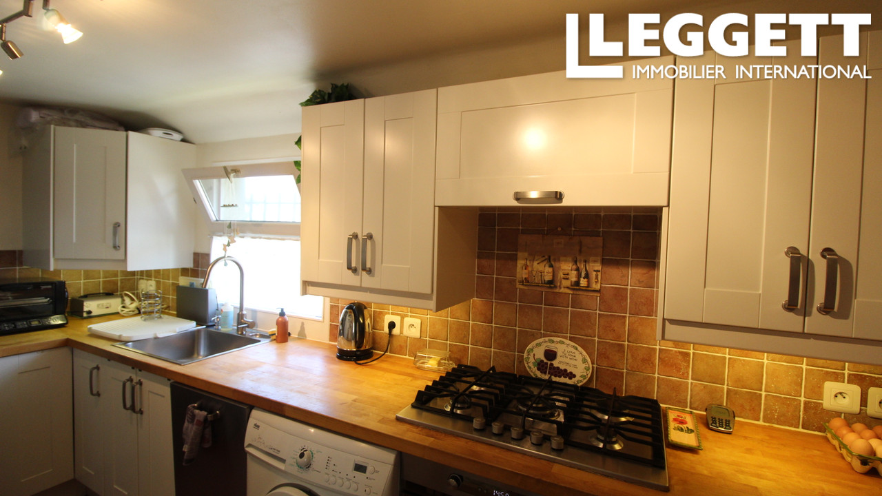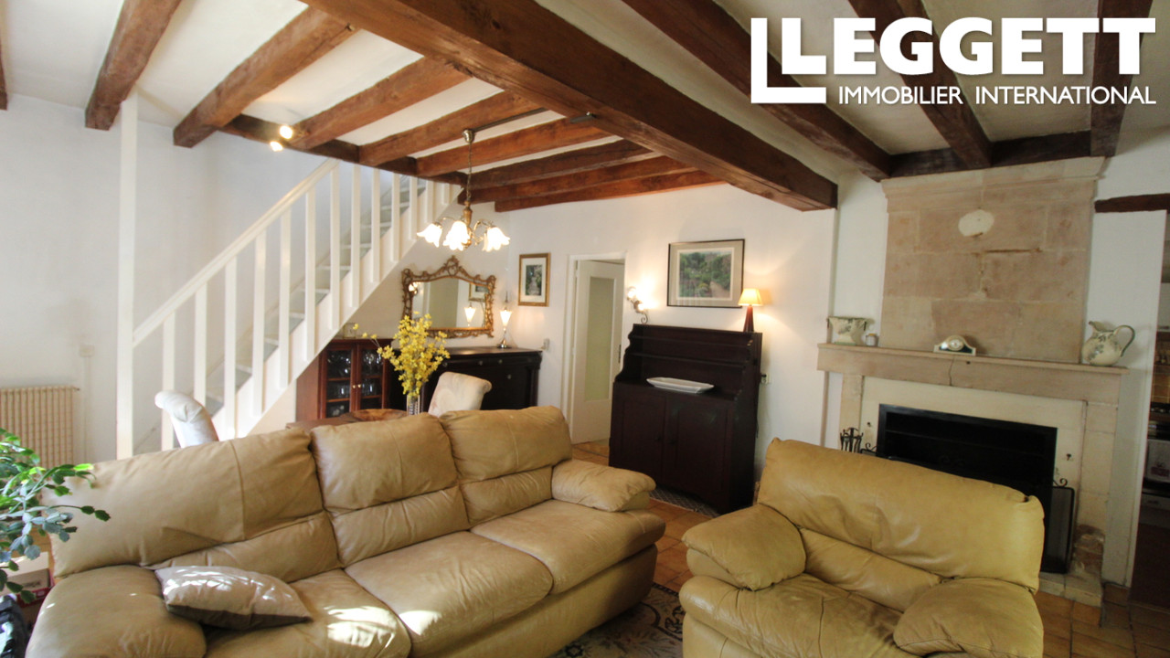 A32108AF36 - Maison d'habitation comprenant au RDC: véranda, entrée, salon/salle à manger (30m2), cuisine (8m2), chambre avec salle d'eau attenante (17m2) et wc séparé. 1er étage: palier et chambre (10m2). A l'extérieur: cour, garage, chaufferie, four à pain et pièce avec cheminée.