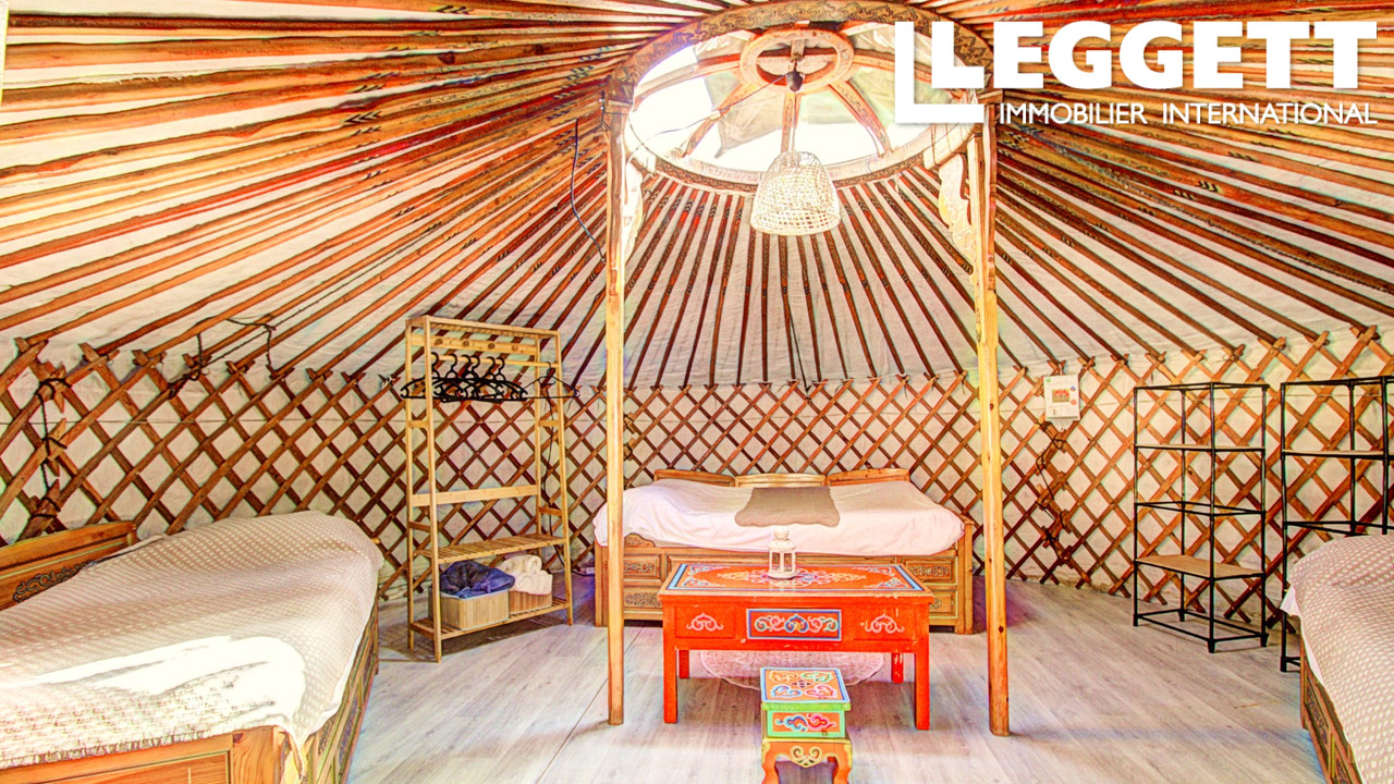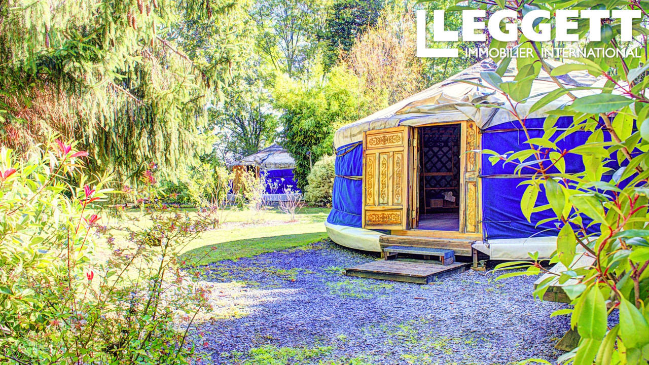 A32136CEL64 - SOUS COMPROMIS - Nichée dans un cadre tranquille, cette charmante maison-de-maître dispose d'un appartement privatif de 3 chambreS, 2 gîtes, 3 yourtes mongoles (salle d'eau et WC privatives chacune), d'un bel espace de détente avec bain nordique et immense salle (100m²) pour accueillir mariages, stages, séminaires, événements...