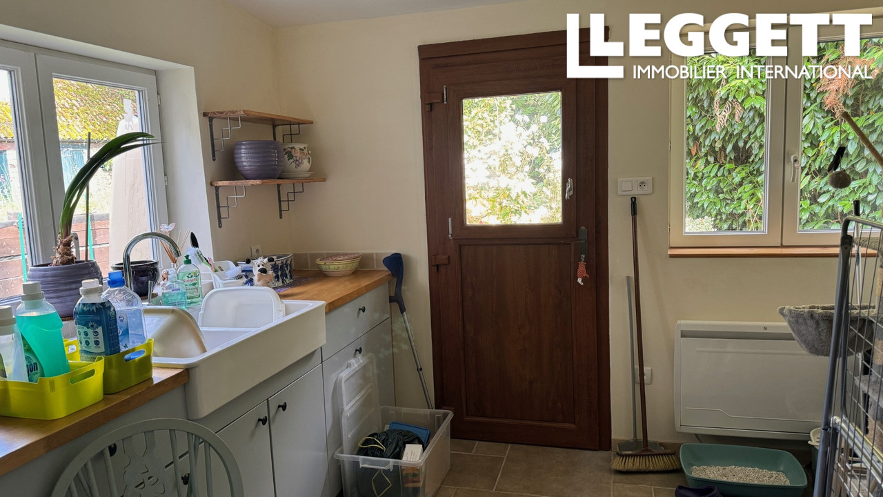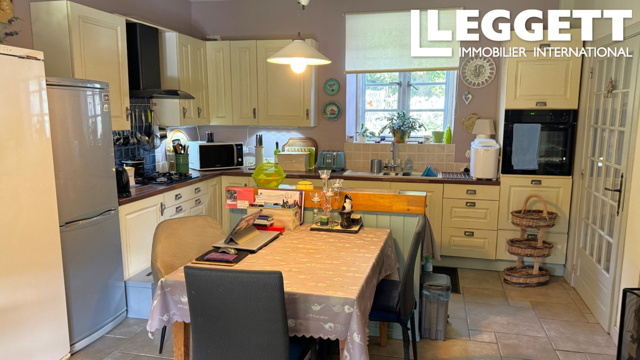 A32949CRP56 - Cette charmante maison, entièrement rénovée, offre un espace de vie, une cuisine / salle à manger, une chambre avec sa propre salle d'eau, un wc invités et une buanderie au rez-de-chaussée.