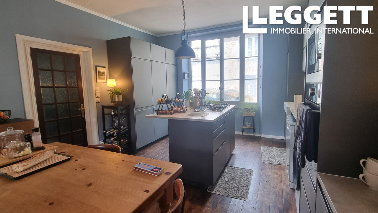 A33230JHC19 - Belle maison actuellement en fonction d'un B&B/Chambre d'Hôtes comprenant: Entrée, couloir, cuisine américaine avec coin lounge et cheminée/poêle à bois. Salle à manger/salon avec cheminée/poêle à bois et des portes-fenêtres donnant à la terrasse et le jardin. Le bel escalier menant au premier étage : 4 chambres, chacune avec un espace de travail pour l'ordinateur ou laptop et sa propre salle d'eau: douche et toilettes. Le grenier partiellement aménagé offre beaucoup d'espace: deux grandes chambres et une salle de bains sont déjà là. La buanderie et l'espace de stockage pour le B&B se trouvent également au grenier. Une belle terrasse, accessible par l'arrière de la maison mène au jardin spacieux et aux deux caves.