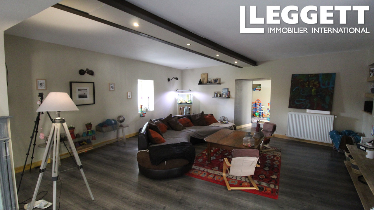 A33153AF86 - Maison d'habitation comprenant au RDC: entrée, dégagement, salle d'eau/buanderie, chaufferie, pièce, grande pièce de vie comprenant cuisine ouverte (24m2), salle à manger (41m2) et salon (33m2), bibliothèque (18m2) et atelier avec mezzanine. 1er étage: grand palier/couloir (23m2), dégagement, pièce (15m2), 2 chambres (13m2 et 14m2), salle de bains et chambre (19m2) avec salle d'eau attenante et dressing avec accès au mezzanine. A l'extérieur: cour, cave dans la rocher, puits, poulailler, parking et terrain (une partie au dessus de la falaise et une partie (non attenant) en bord de rivière).