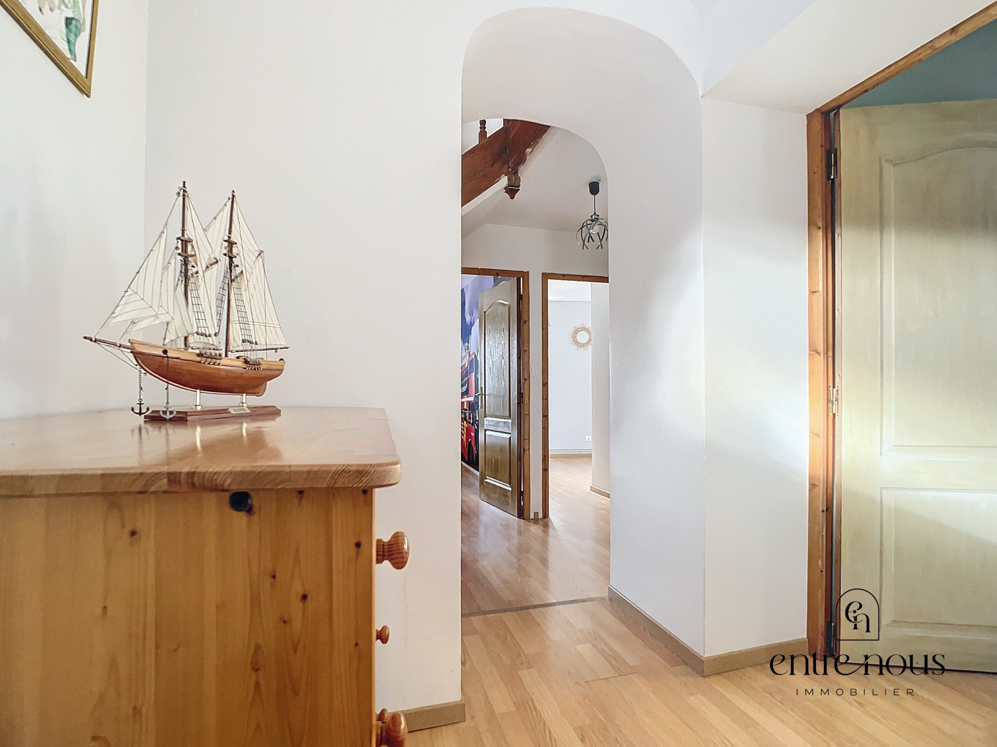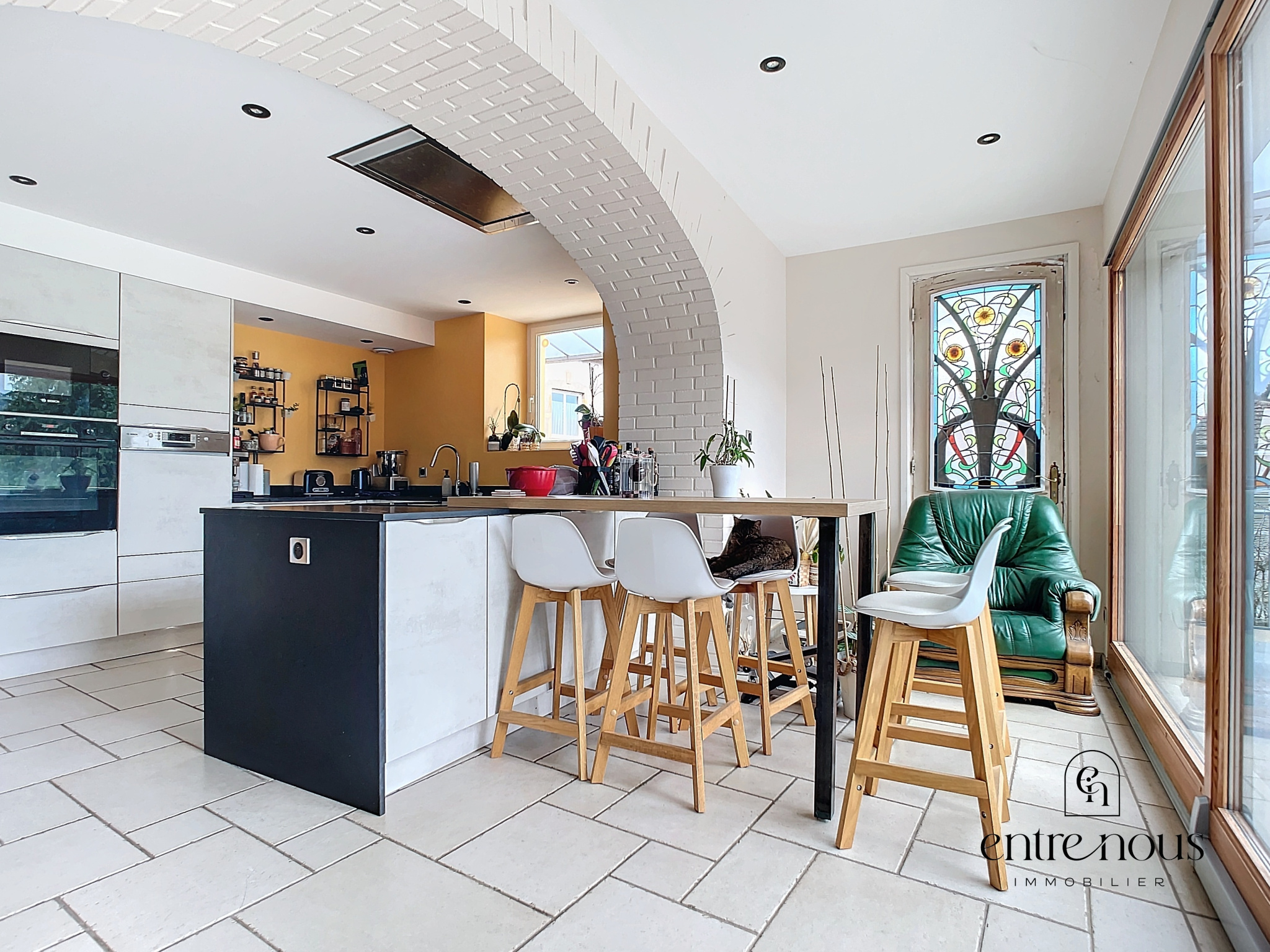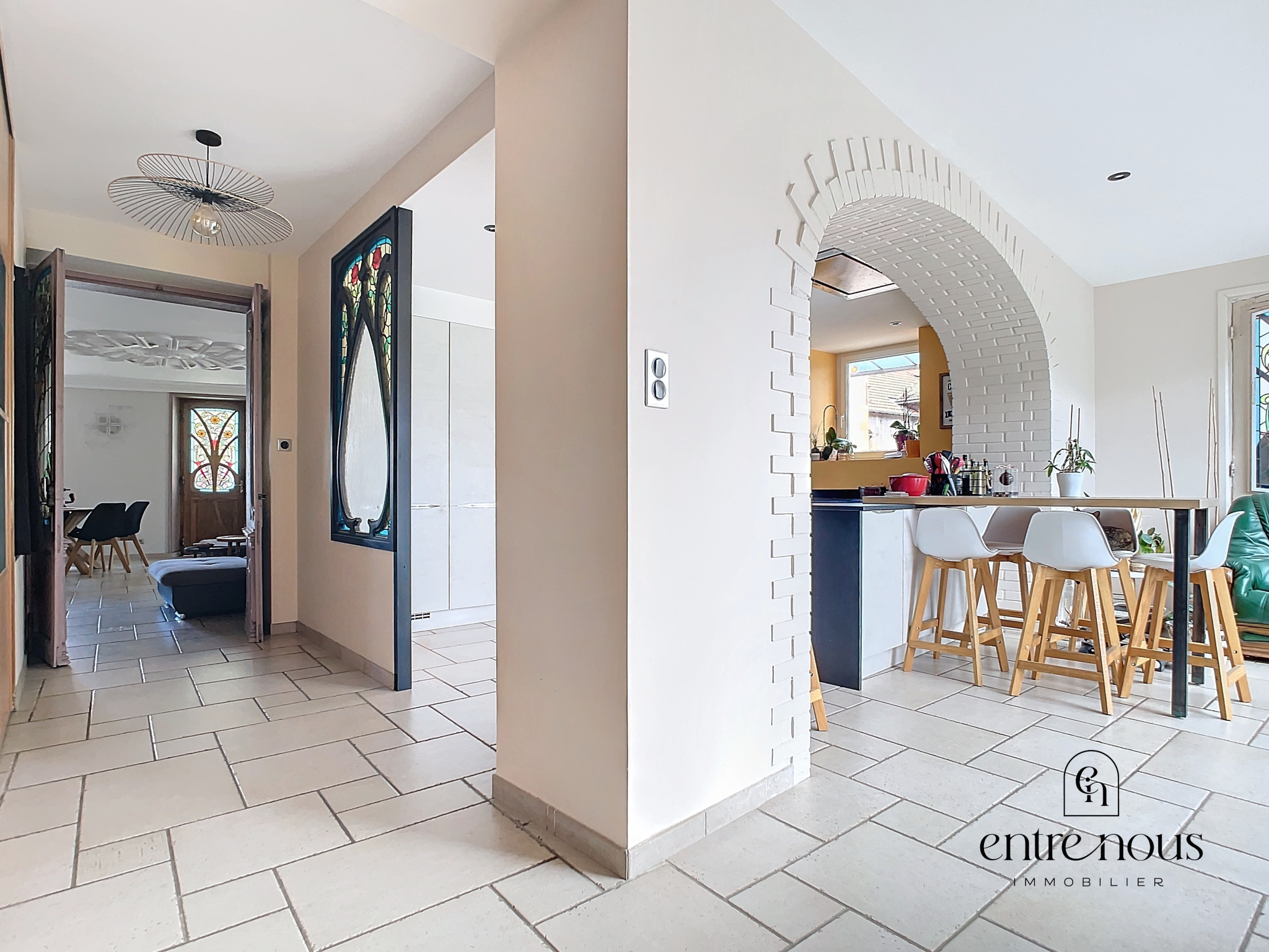 Nouveauté ENTRENOUS-IMMOBILIER, découvrez cette maison de caractère, entièrement rénovée avec soin, offrant 270 m2 d'élégance et de confort à Belmont-de-la-Loire. Au rez-de-chaussée, laissez-vous séduire par un vaste séjour lumineux de 40 m2, une cuisine entièrement équipée de 23 m2 ouvrant sur une salle à manger chaleureuse de 30 m2 et une terrasse idéale pour vos moments de détente. Les portes avec vitraux d'époque, soigneusement préservées, confèrent à cette demeure un charme unique. À l'étage, l'espace nuit propose quatre chambres, dont une chambre de 30 m2 avec dressing ainsi qu'une salle de bain et une toilette indépendante. Un espace complémentaire aménagé de 40 m2, sublimé par ses poutres apparentes, vous offre un espace supplémentaire modulable selon vos envies. Le sous-sol, particulièrement fonctionnel, inclut une pièce de réception avec cuisine équipée, salle d'eau et toilette indépendante, donnant directement sur la cour et le terrain. Vous y trouverez également une chaufferie, un cellier, une buanderie et un caveau idéal pour les amateurs de vin. Côté équipements, cette maison bénéficie de prestations haut de gamme : aspiration centralisée, chauffage central par géothermie, et des aménagements extérieurs pensés pour votre confort. Le terrain paysager de 697 m2 comprend un terrain de boules et une piscine semi-enterrée chauffée, parfaits pour vos loisirs en famille ou entre amis. Ne manquez pas cette opportunité rare alliant charme, modernité et prestations haut de gamme.