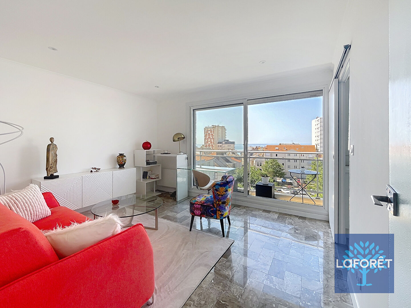 À moins de 300 mètres du remblai, cet appartement T2 de 40,89 m², entièrement rénové, est situé au 5e étage d'une résidence avec ascenseur, à deux pas du marché Arago et de la grande plage. Il offre un séjour lumineux ouvrant sur un grand balcon avec vue sur mer, une cuisine indépendante aménagée et équipée, une chambre avec accès balcon, une salle de bains et un WC séparé. Une cave en sous-sol complète ce bien.