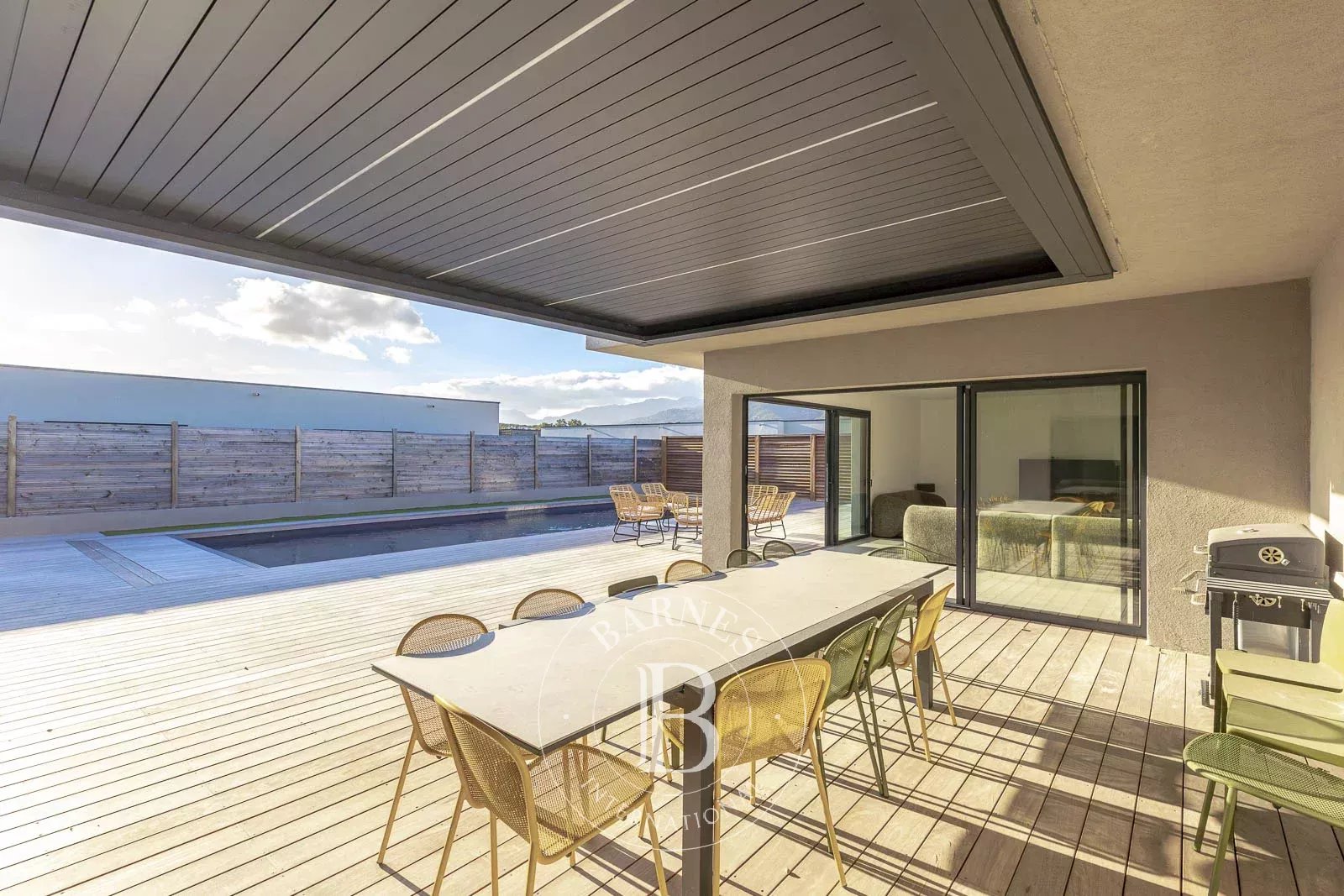 Située à Mora dell'Onda, à quelques pas des plages de Saint-Cyprien et Cala Rossa, cette villa de plain-pied d'environ 206 m² allie élégance et confort.
