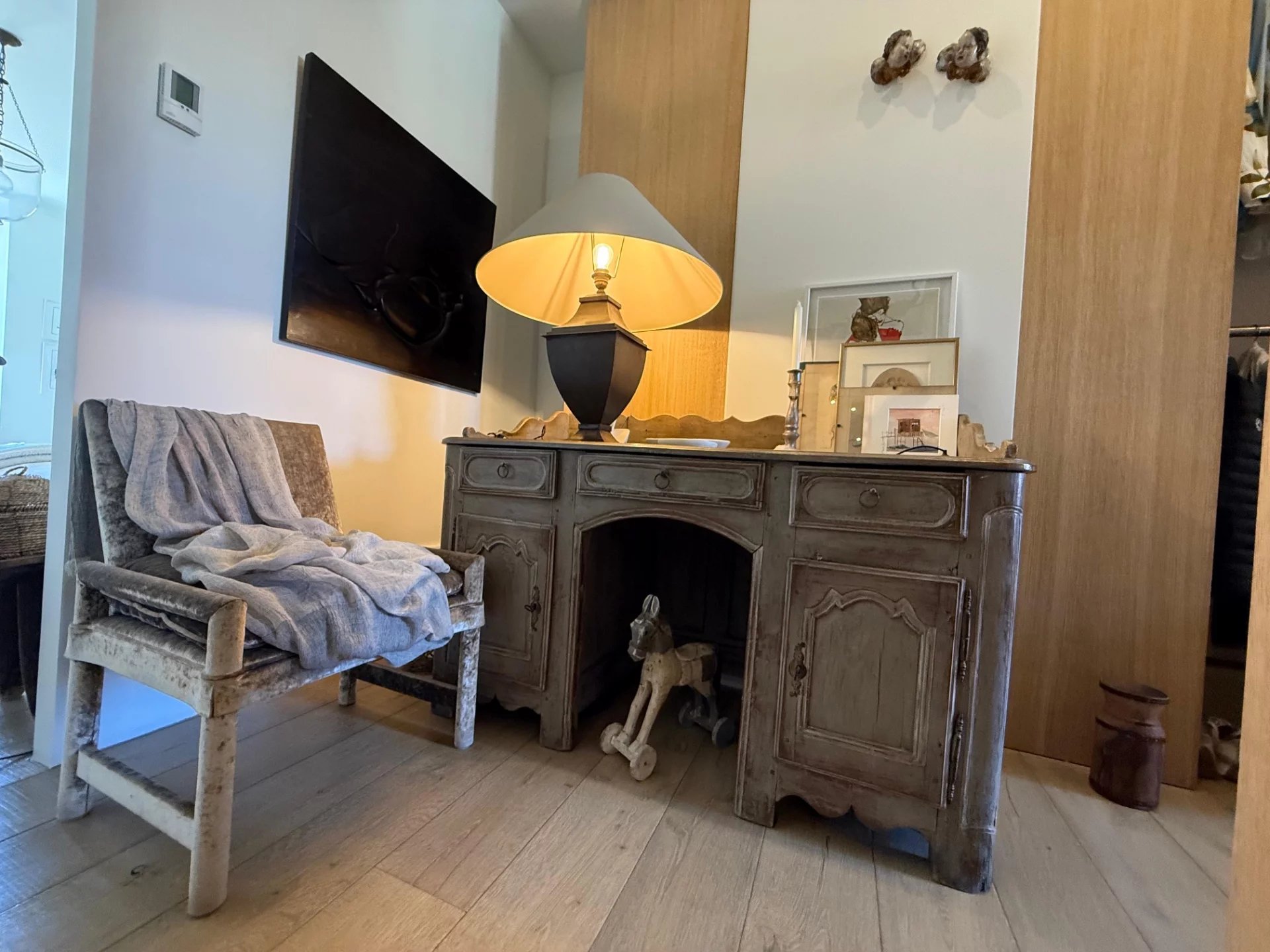 Le sol et les meubles de cuisine sont en chêne massif conçus par un ébéniste du corps des Compagnons du Devoir.
