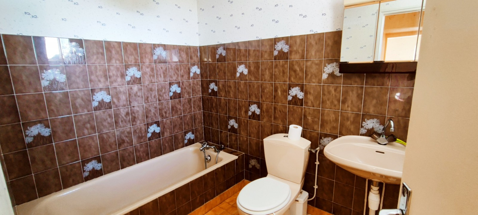 A l'étage : 3 chambres de belle taille, SDB, WC.